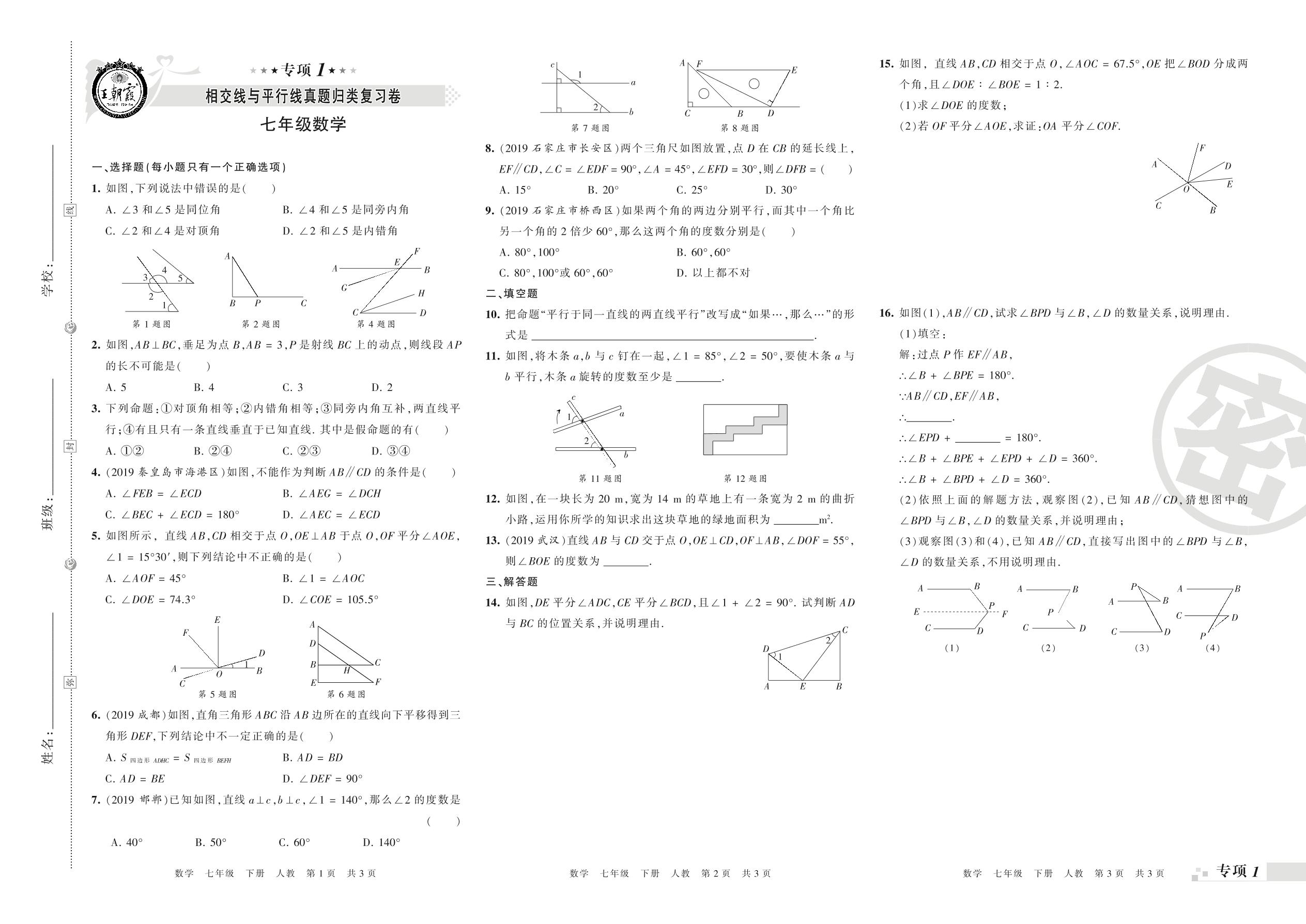 王朝霞期末专项卷——相交线与平行线、实数真题归类复习卷七年级下册数学(人教版)_R210805155031【0】