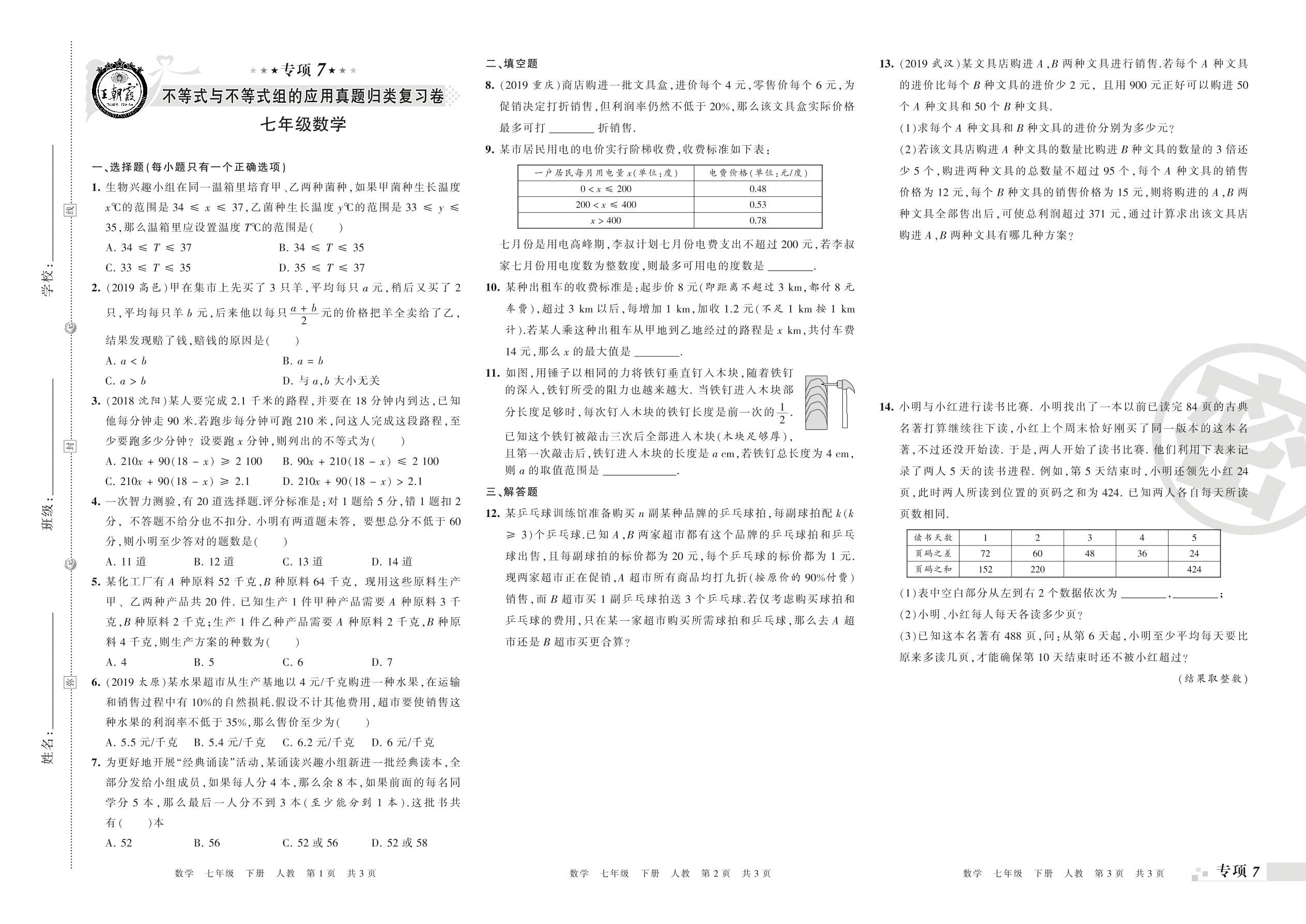 王朝霞期末专项卷——不等式与不等式组的应用、数据的收集、整理与描述真题归类复习卷七年级下册数学(人教版)_R210805155047【0】