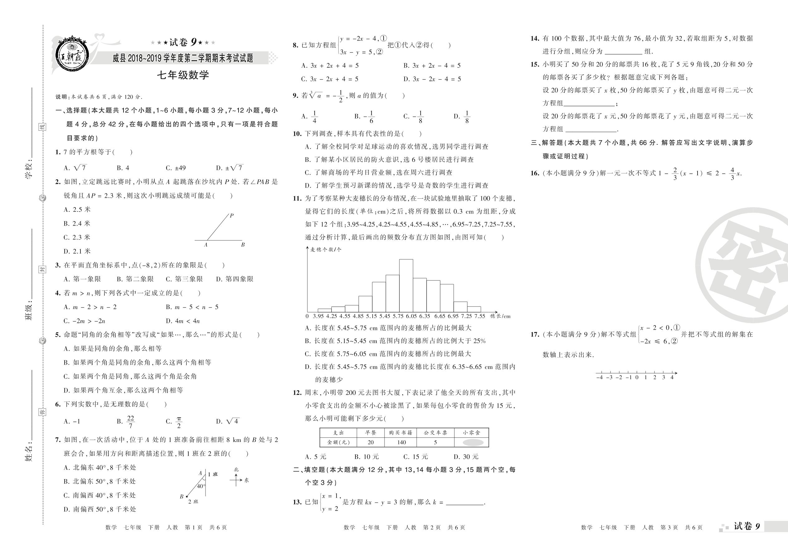 2018-2019学年第二学期邢台市威县七年级数学试卷(人教版)【9】