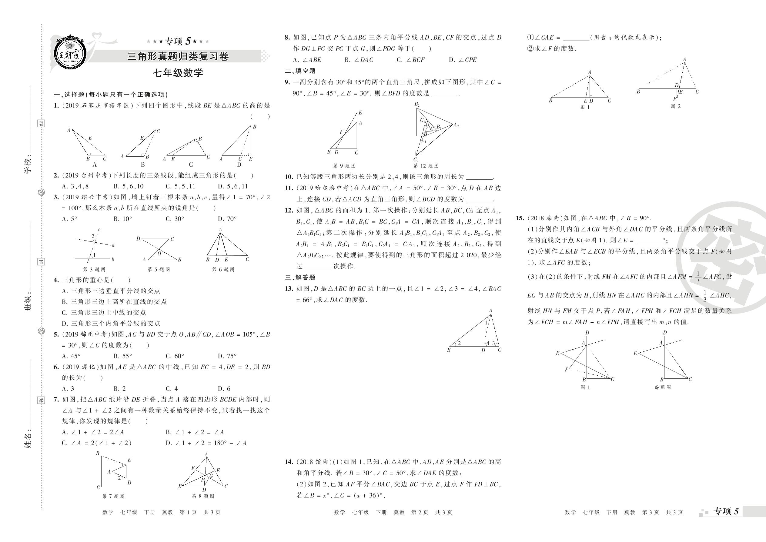 王朝霞期末专项卷——三角形、一元一次不等式(组)的认识与解法真题归类复习卷七年级下册数学(冀教版)_R210805155150【0】