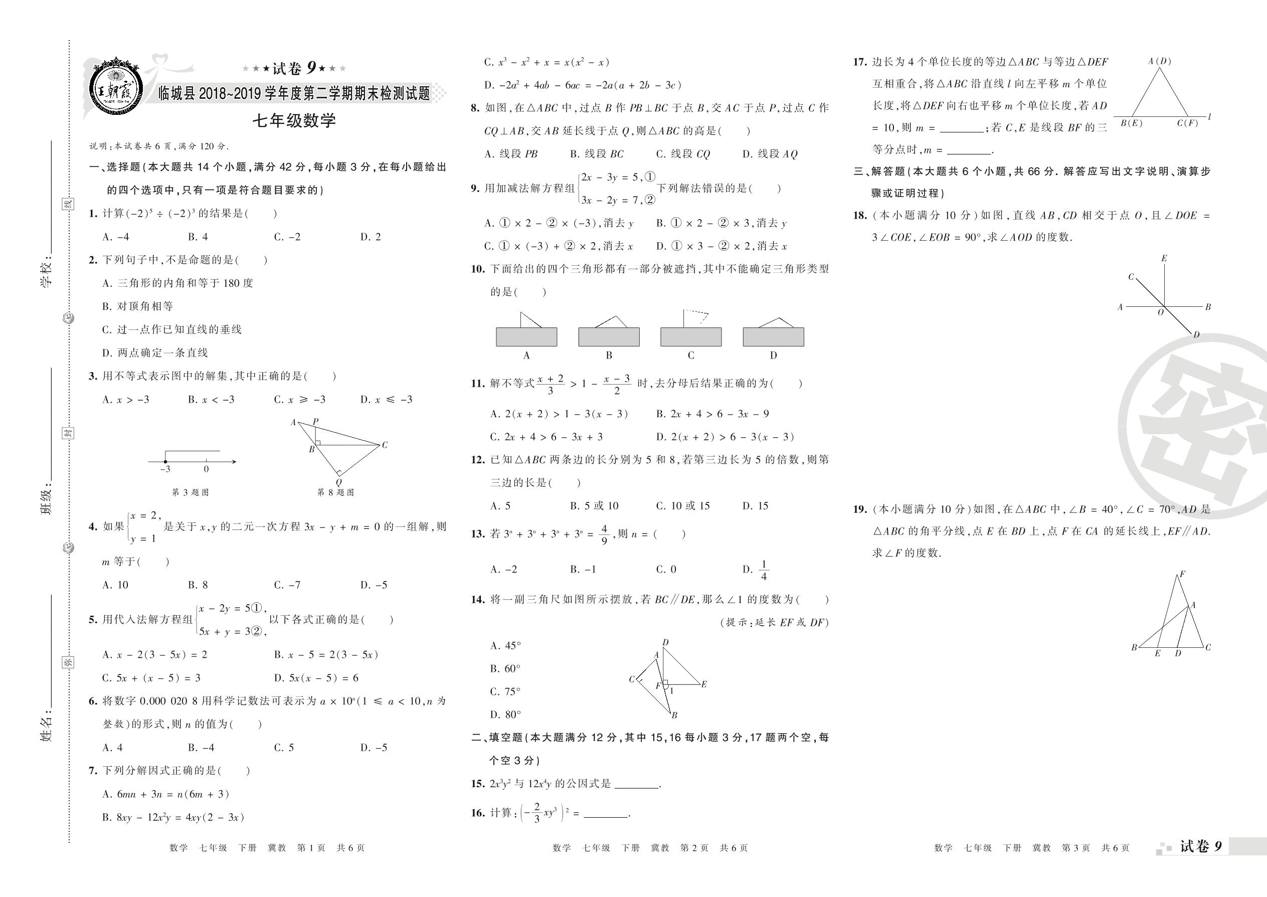 2018-2019学年第二学期邢台市临城县七年级数学试卷(冀教版)【9】