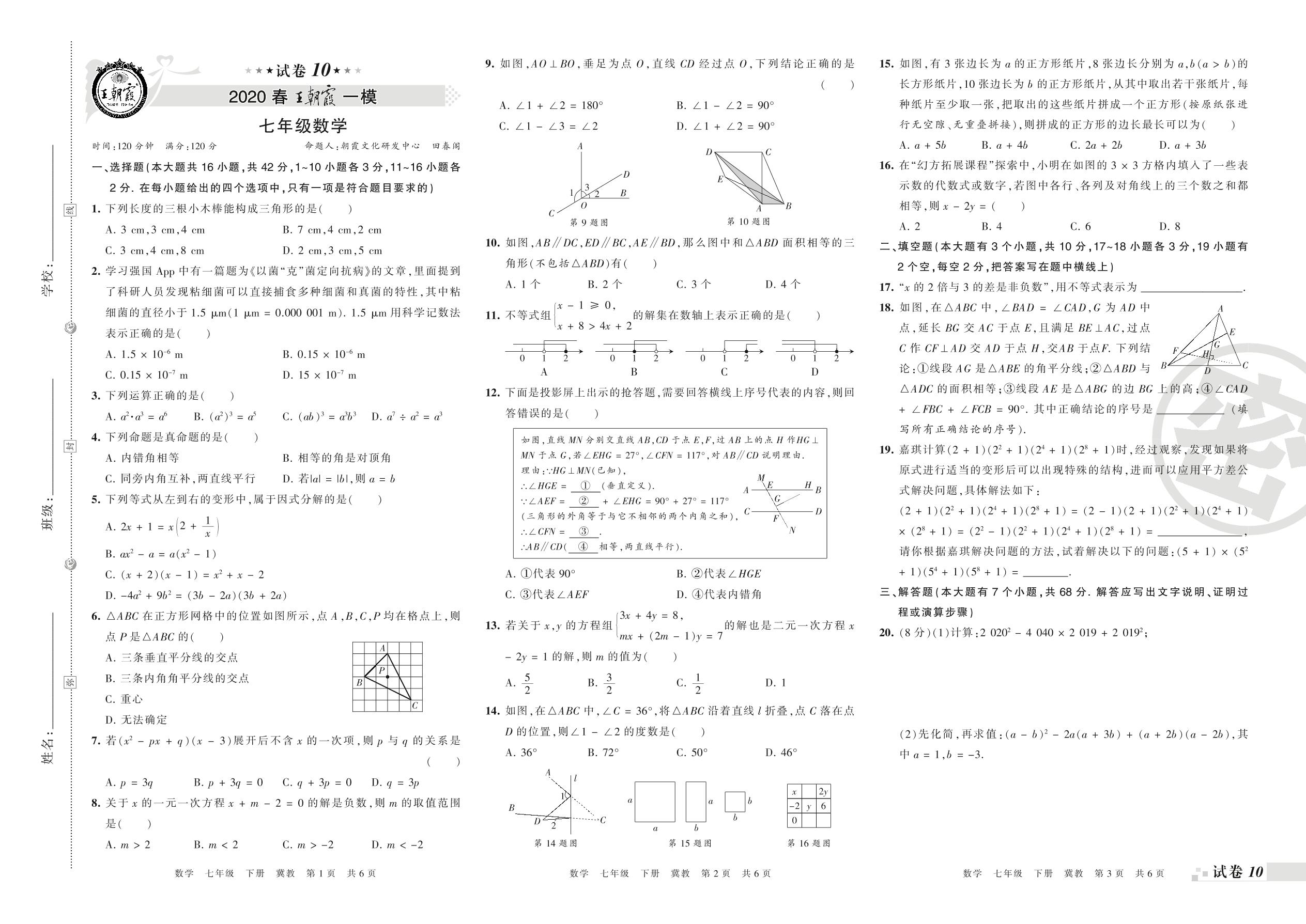 王朝霞期末模拟卷七年级下册数学(冀教版)_R210805155240【10】
