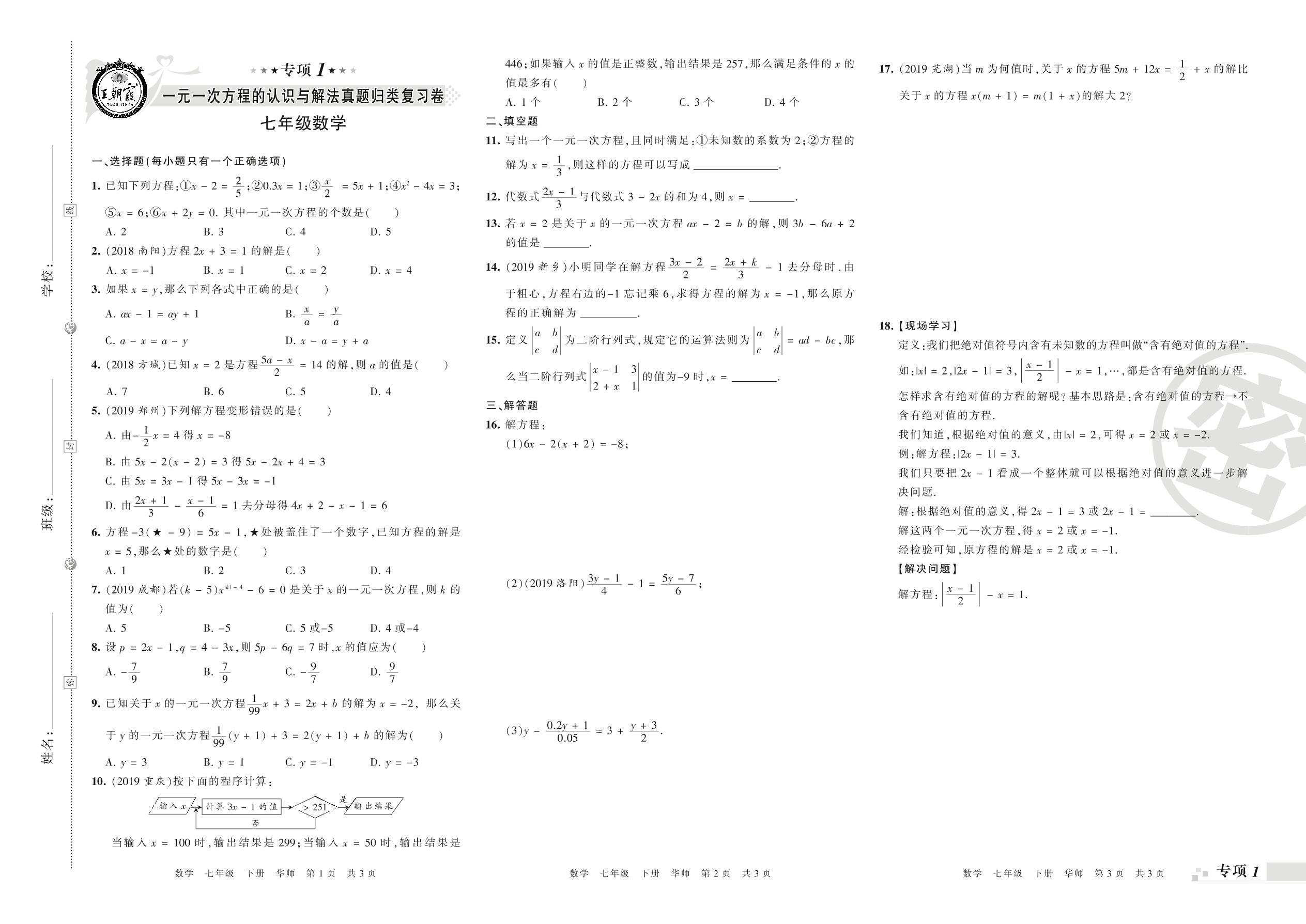 王朝霞期末专项卷——一元一次方程的认识与解法、一次方程组的认识与解法真题归类复习卷七年级下册数学(华师版)_R210805155304【0】