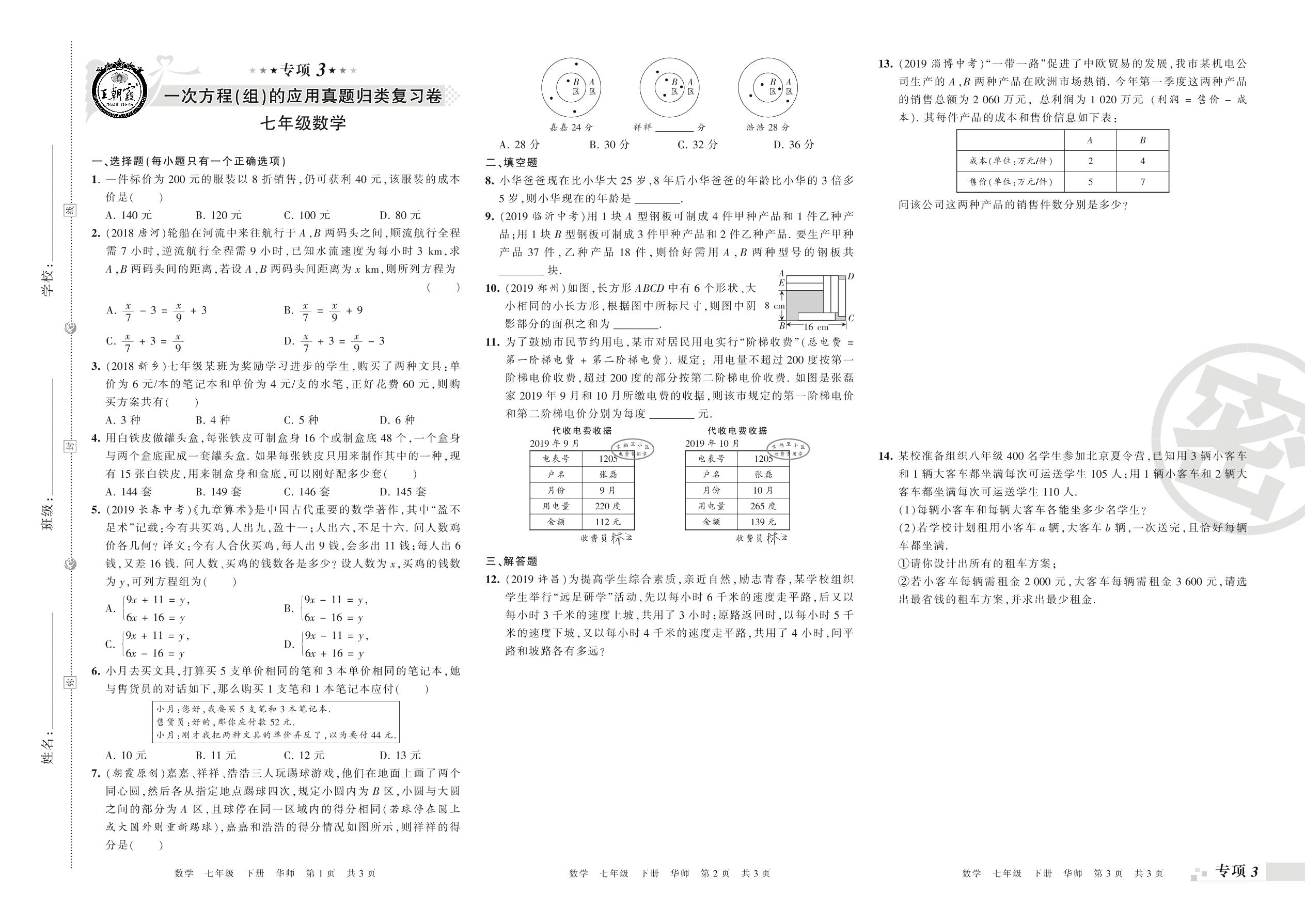 王朝霞期末专项卷——一次方程(组)的应用、一元一次不等式(组)的认识与解法真题归类复习卷七年级下册数学(华师版)_R210805155308【0】