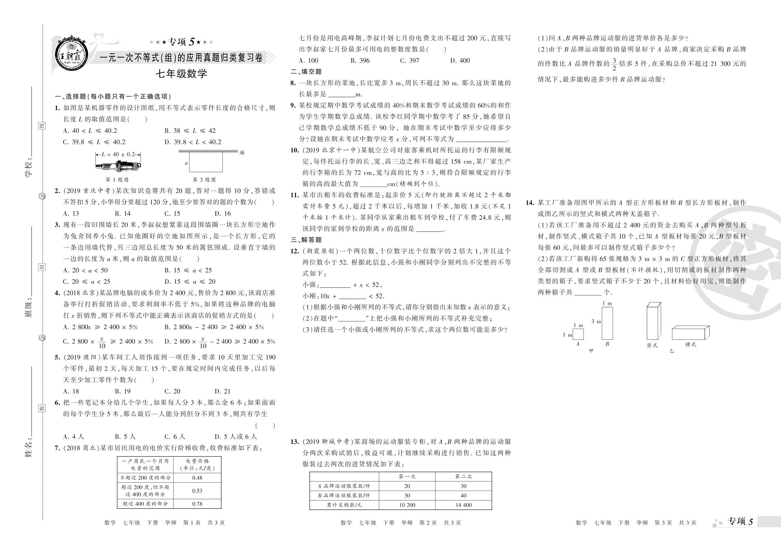 王朝霞期末专项卷——一元一次不等式(组)的应用、多边形(一)真题归类复习卷七年级下册数学(华师版)_R210805155313【0】