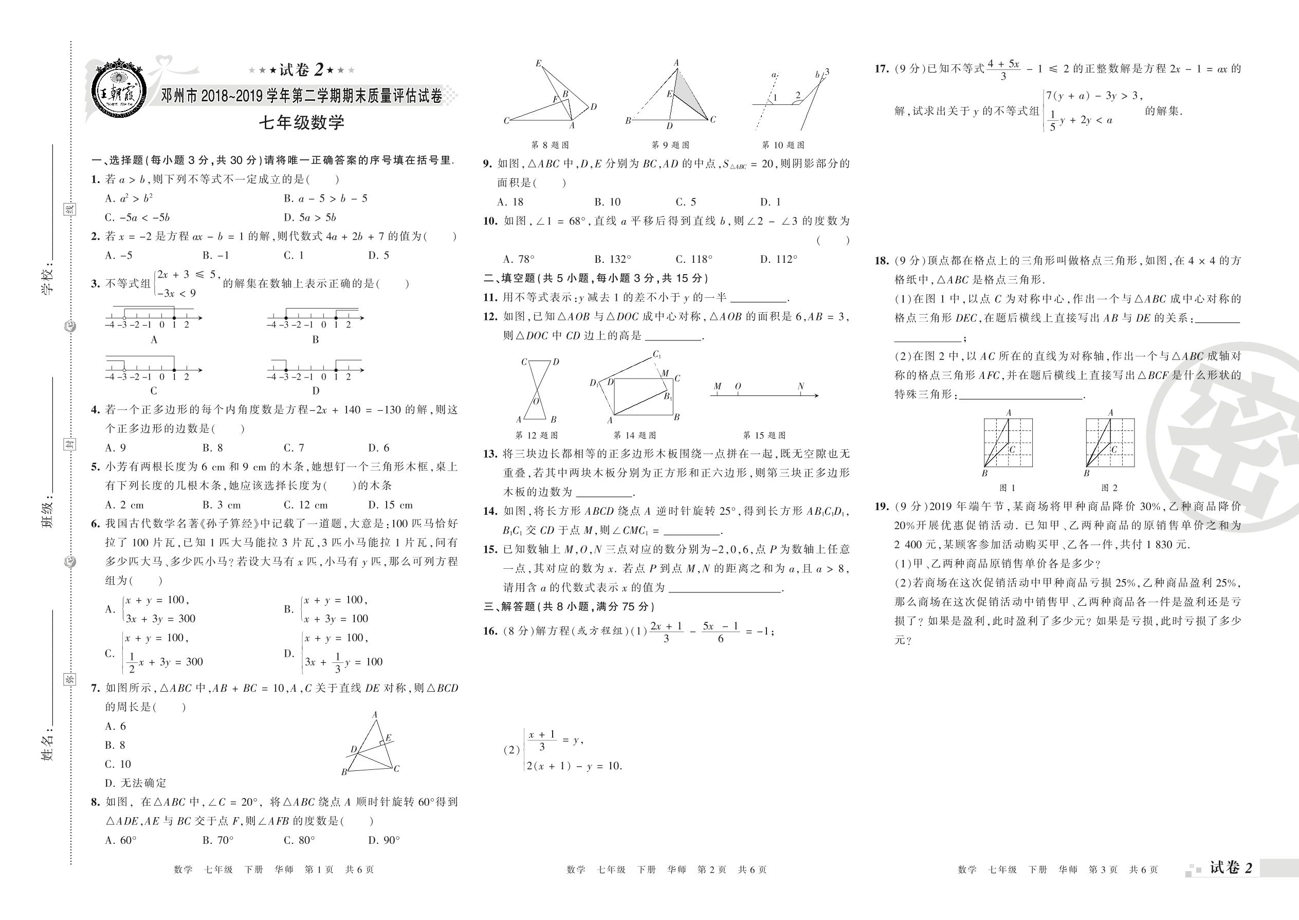 2018-2019学年第二学期邓州市七年级数学试卷(华师版)【2】