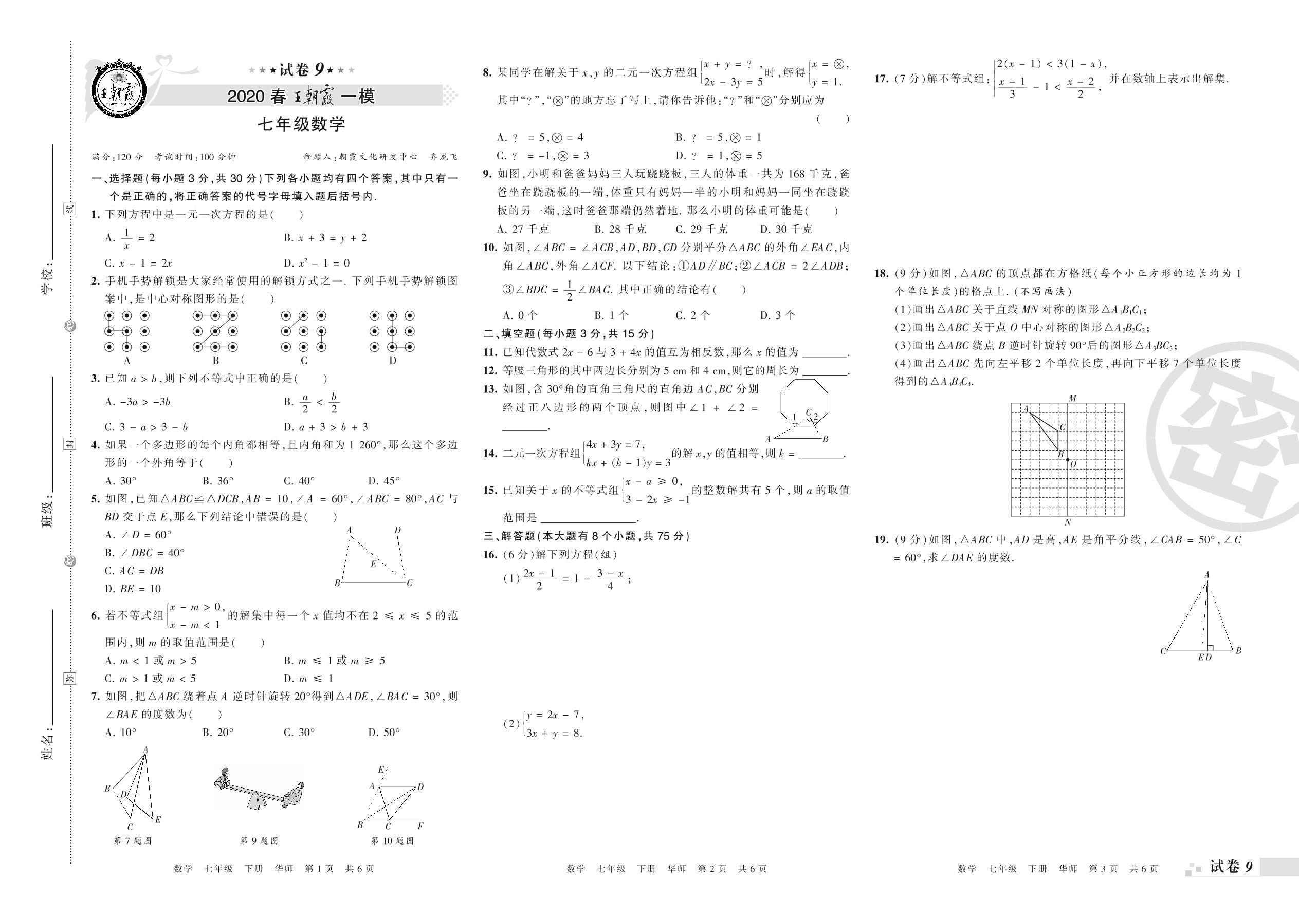 王朝霞期末模拟卷七年级下册数学(华师版)_R210805155401【9】