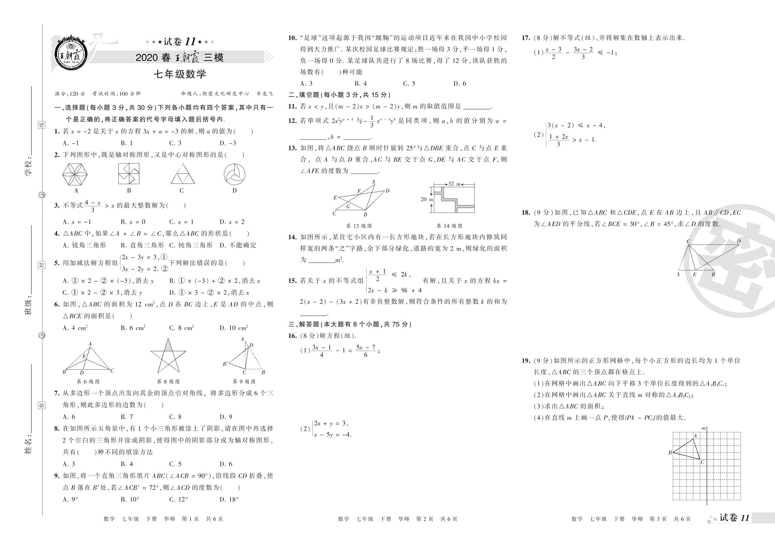 王朝霞期末模拟卷七年级下册数学(华师版)_R210805155414【11】