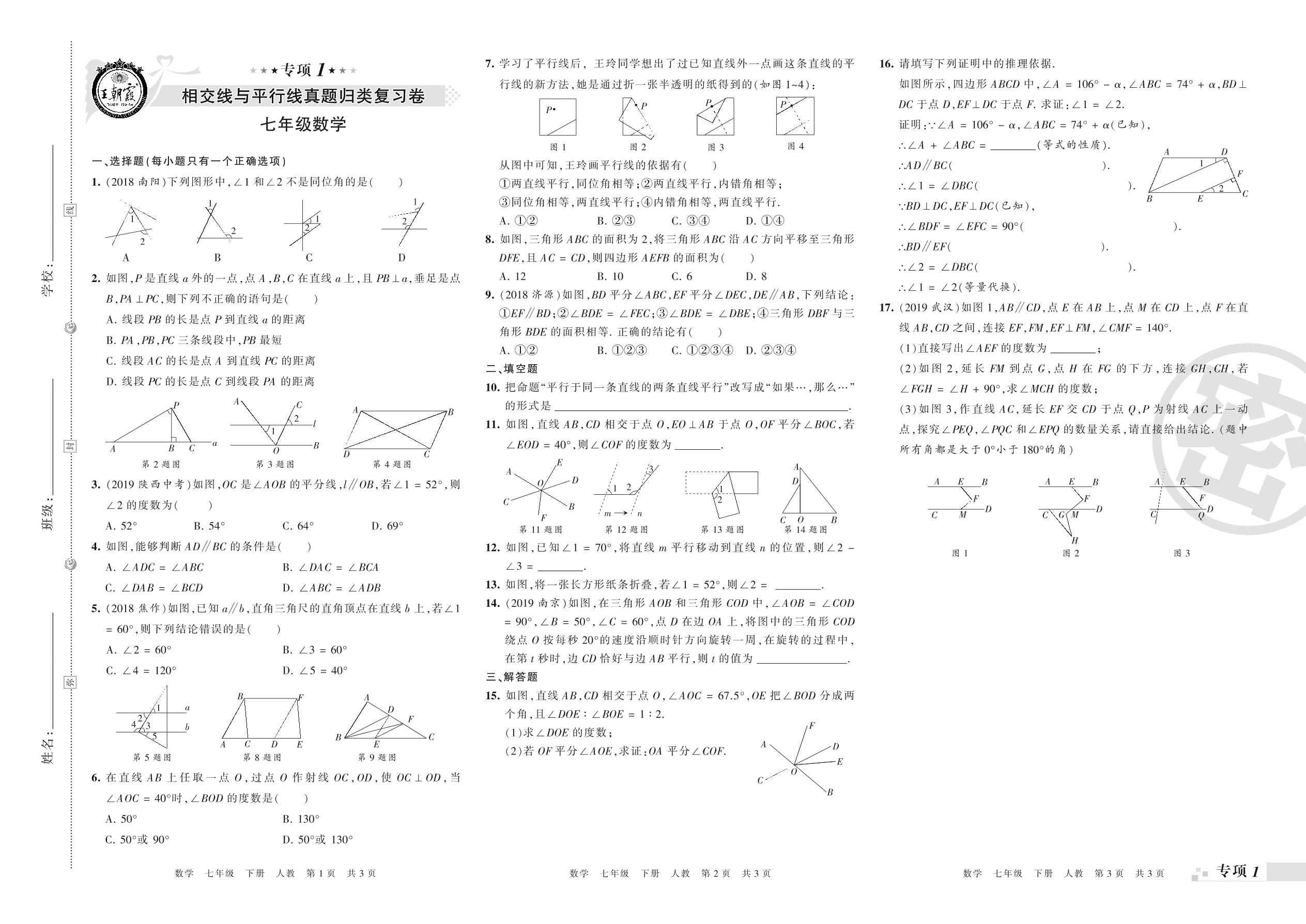 王朝霞期末专项卷——相交线与平行线、实数真题归类复习卷七年级下册数学(人教版)_R210805155419【0】