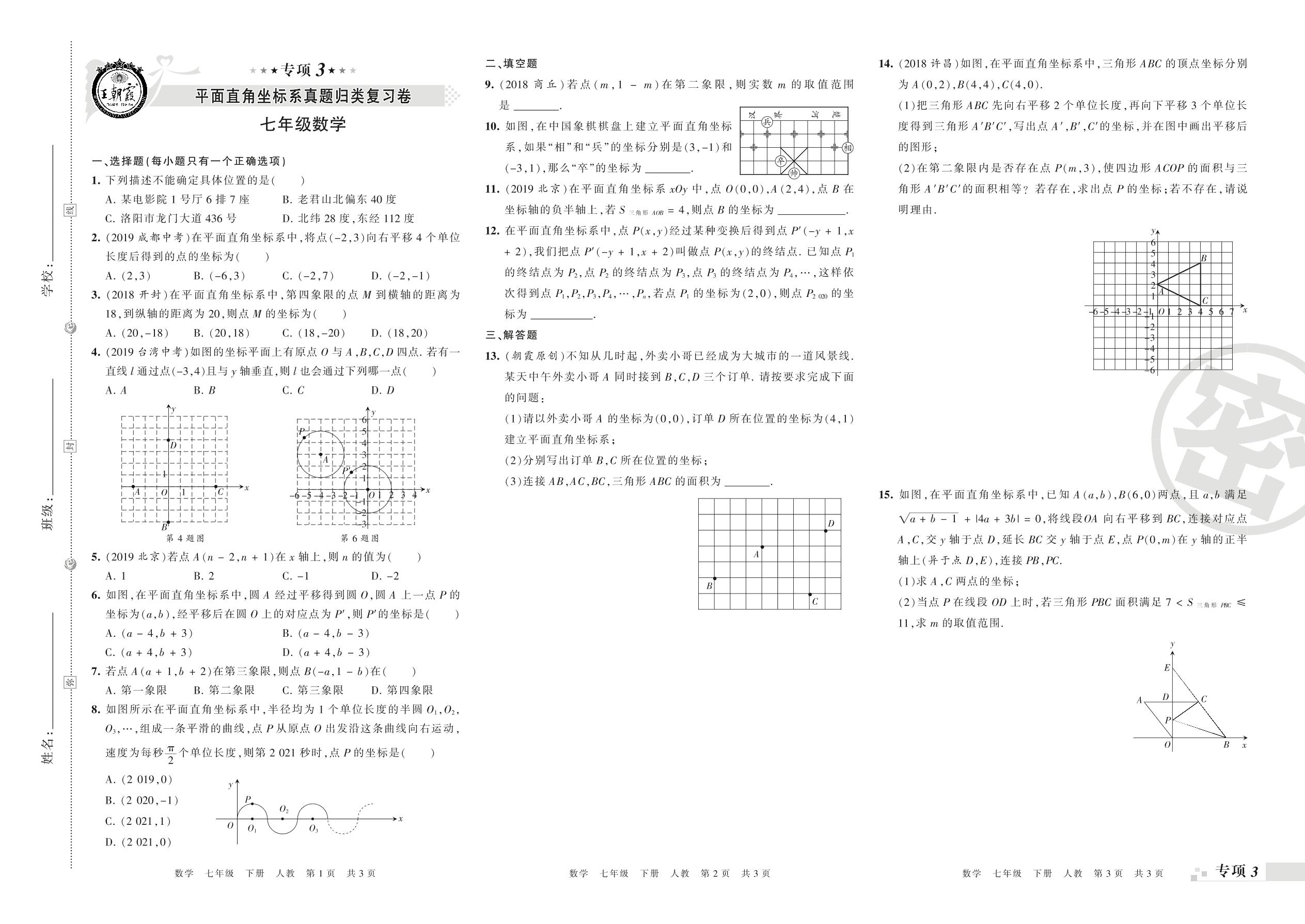 王朝霞期末专项卷——平面直角坐标系、二元一次方程组的认识与解法真题归类复习卷七年级下册数学(人教版)_R210805155424【0】