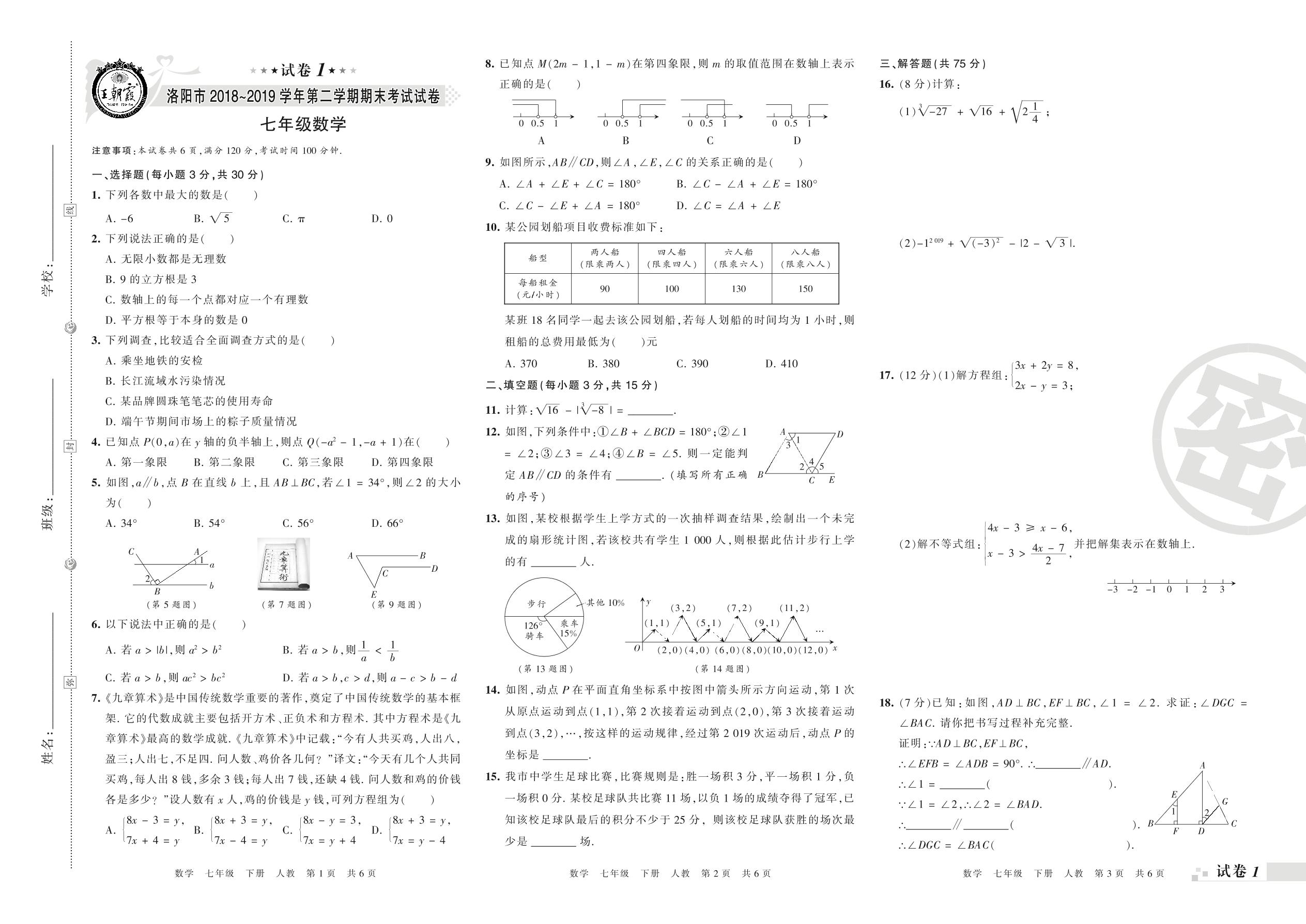 2018-2019学年第二学期洛阳市七年级数学试卷(人教版)_R210805155441【1】