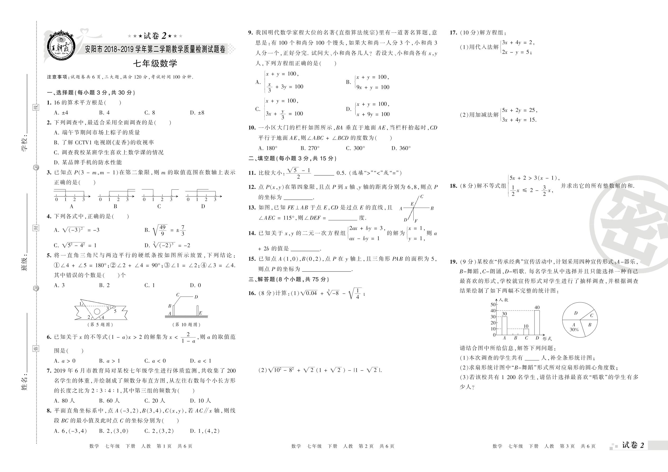 2018-2019学年第二学期安阳市七年级数学试卷(人教版)_R210805155446【2】