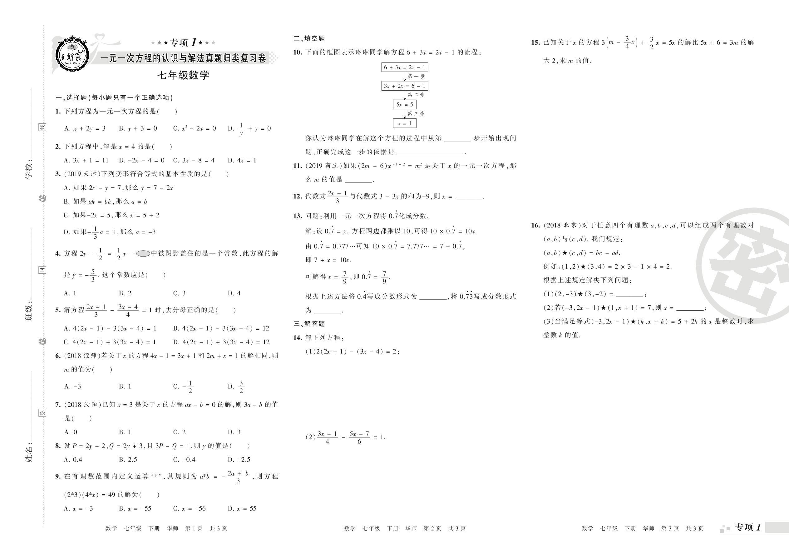 王朝霞期末专项卷——一元一次方程的认识与解法、二元一次方程的认识与解法真题归类复习卷七年级下册数学(华师版)_R210805155535【0】