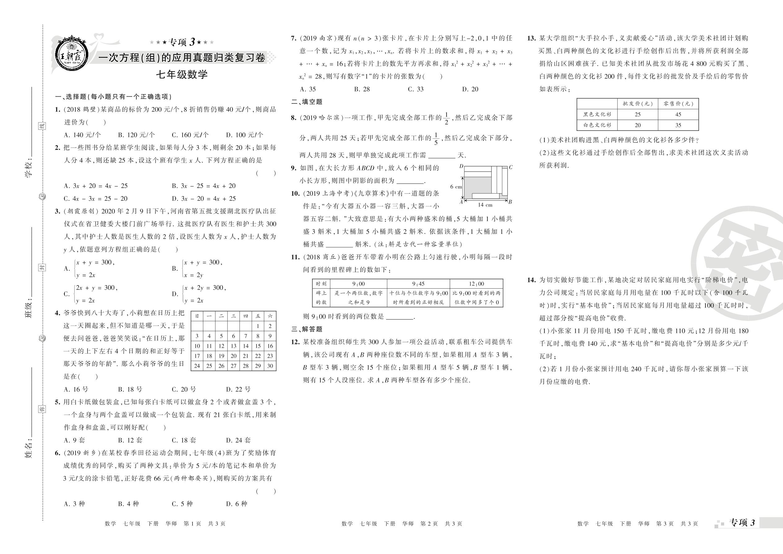 王朝霞期末专项卷——一次方程(组)的应用、一元一次不等式(组)的认识与解法真题归类复习卷七年级下册数学(华师版)_R210805155538【0】