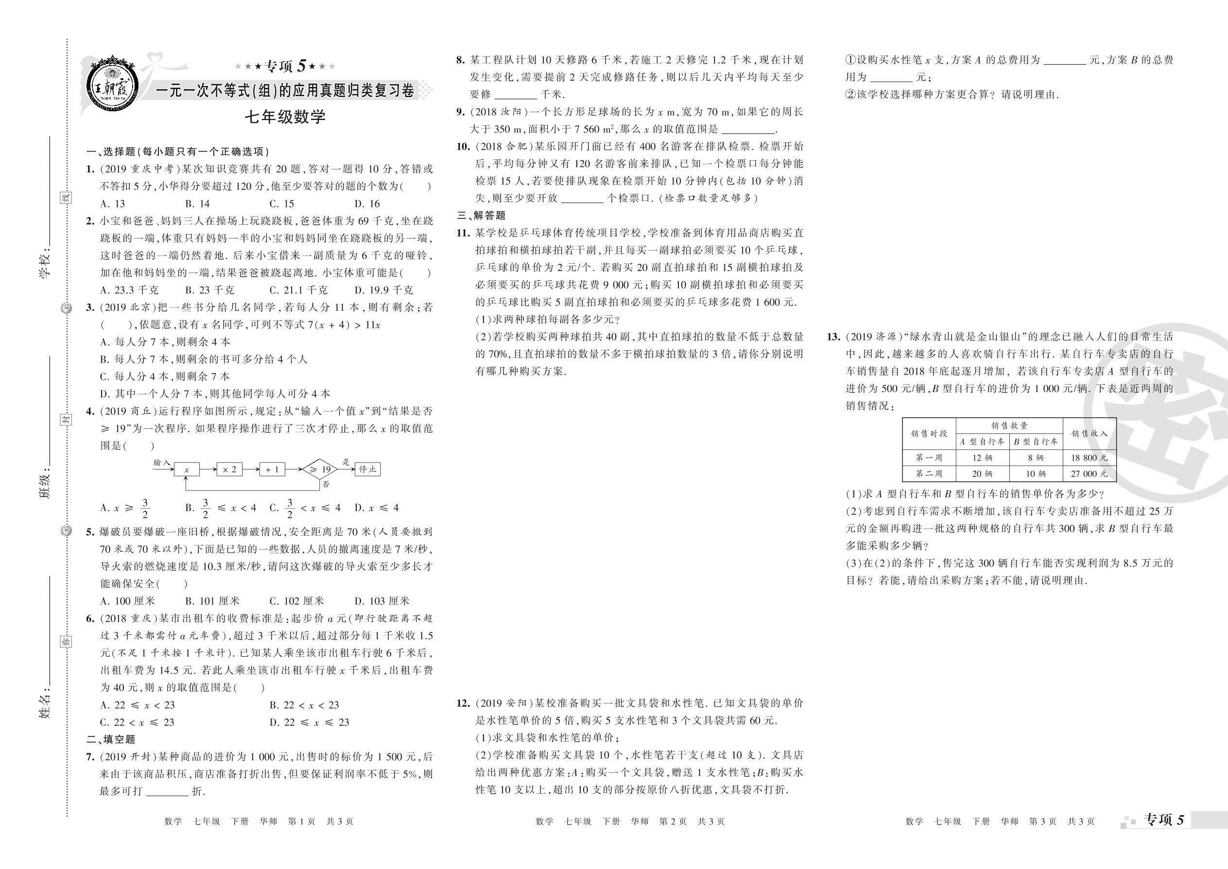 王朝霞期末专项卷——一元一次不等式(组)的应用、多边形(一)真题归类复习卷七年级下册数学(华师版)_R210805155543【0】