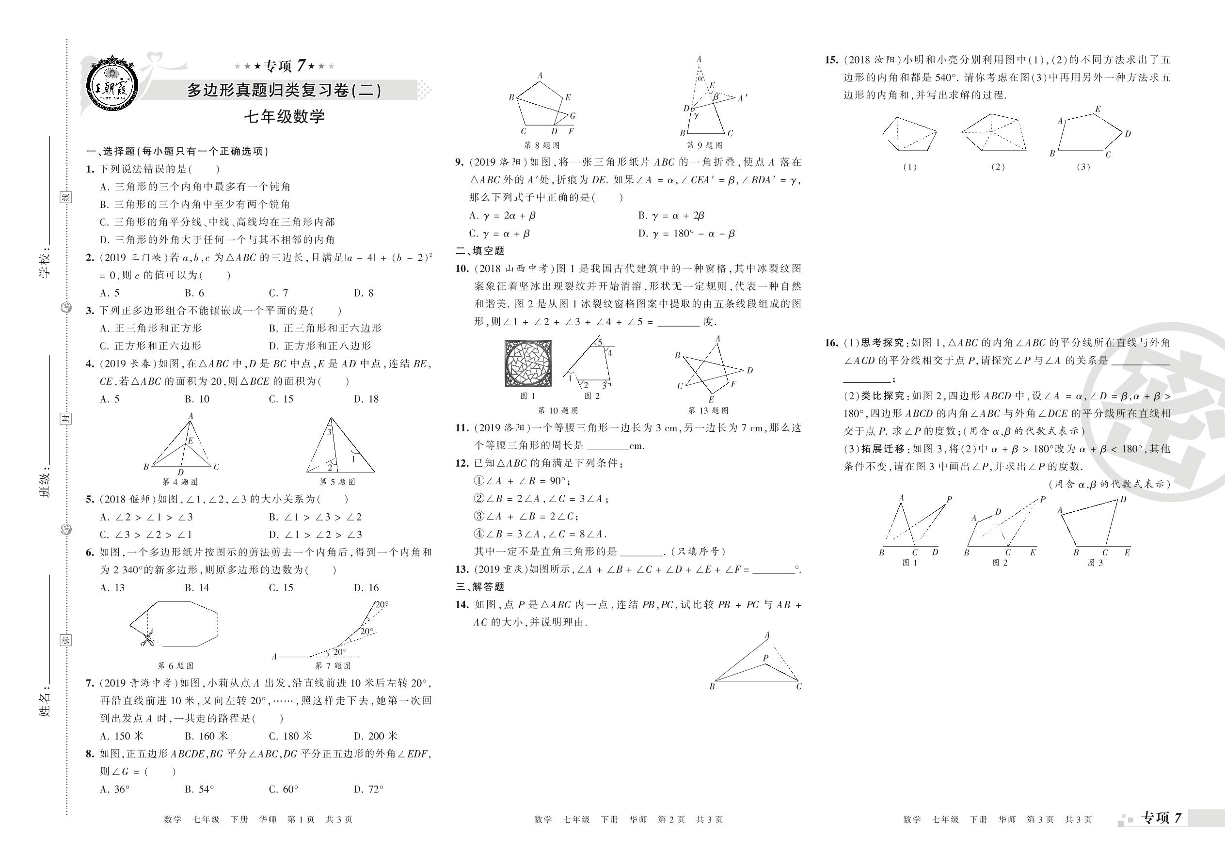 王朝霞期末专项卷——多边形(二)、轴对称、平移与旋转真题归类复习卷七年级下册数学(华师版)_R210805155549【0】