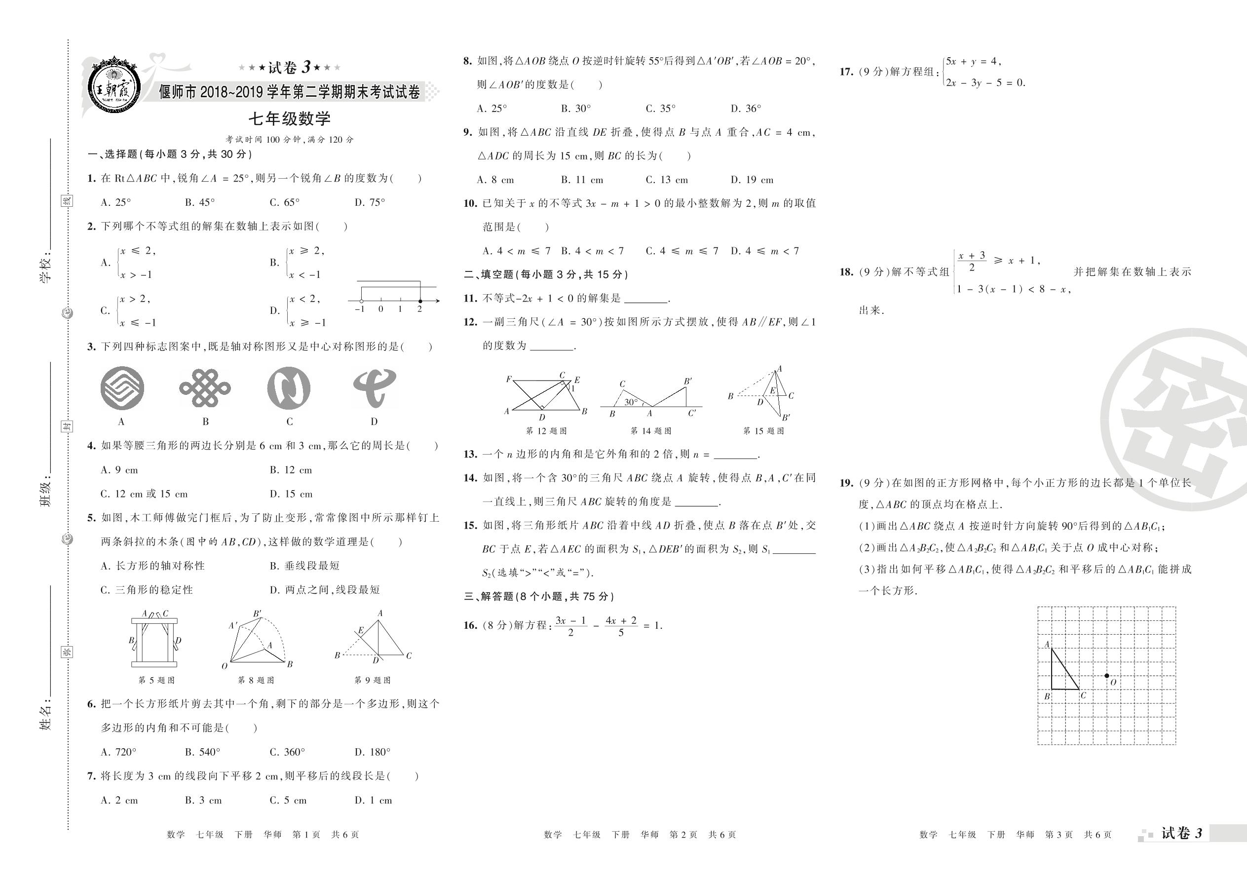 2018-2019学年第二学期偃师市七年级数学试卷(华师版)【3】