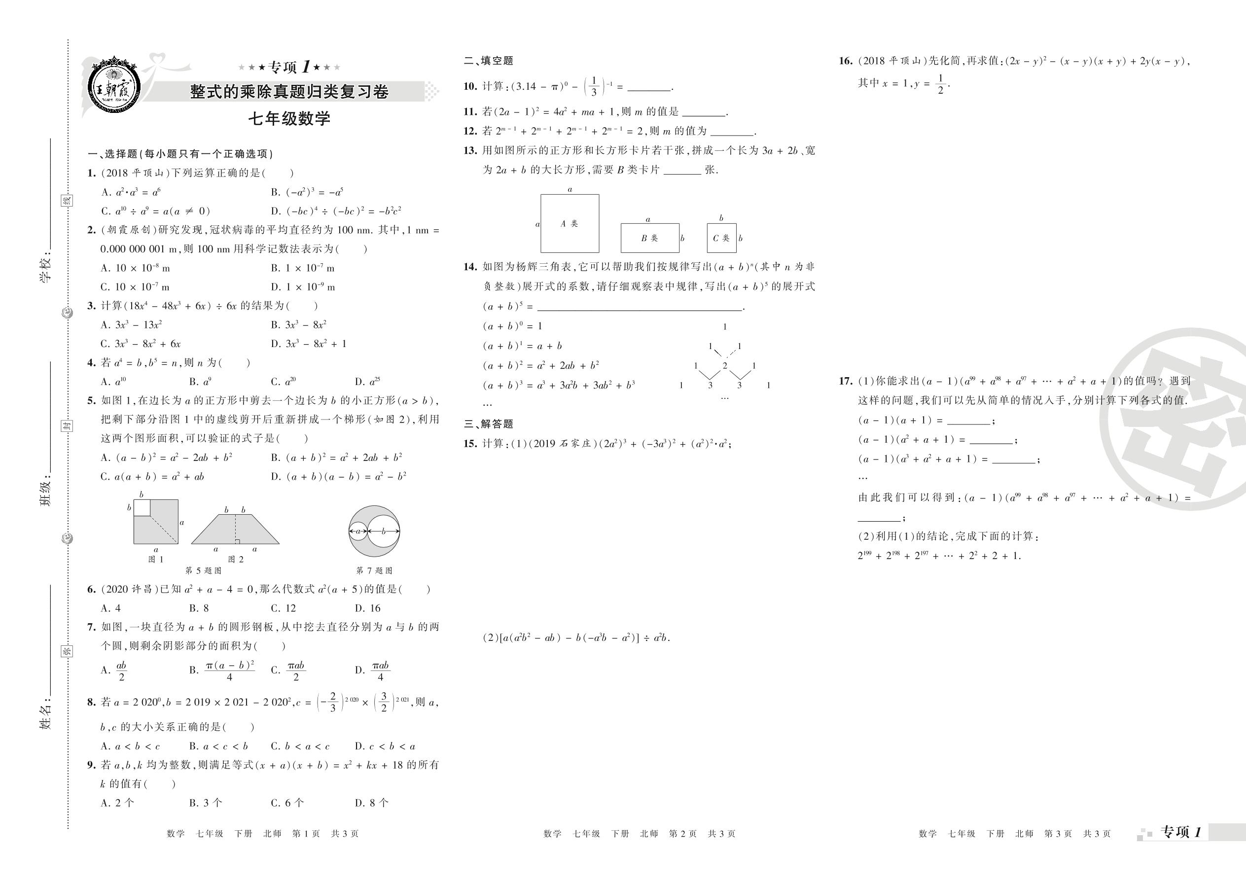 王朝霞期末专项卷——整式的乘除、相交线与平行线(一)真题归类复习卷七年级下册数学(北师版)_R210805155647【0】