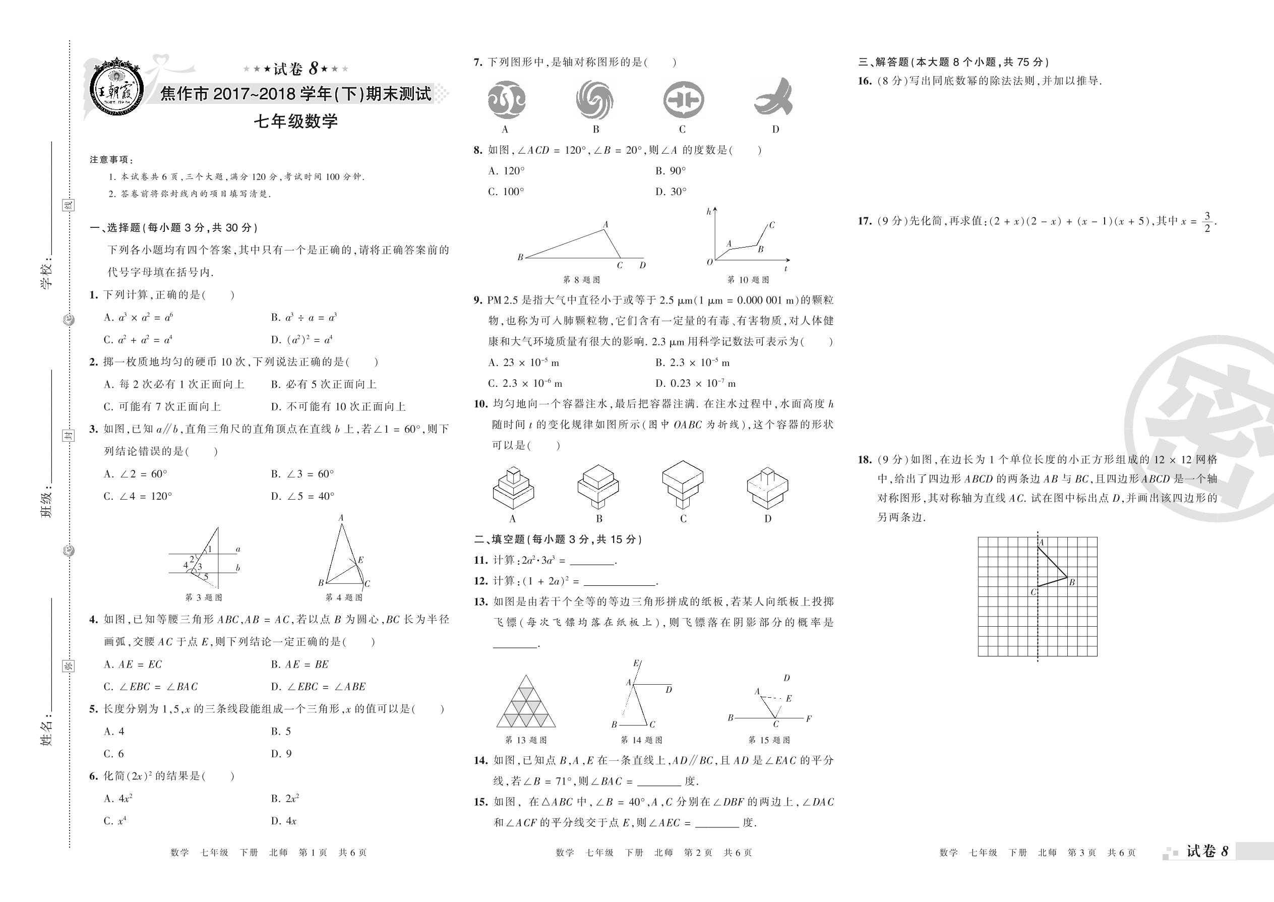 2017-2018学年第二学期焦作市七年级数学试卷(北师版)【8】