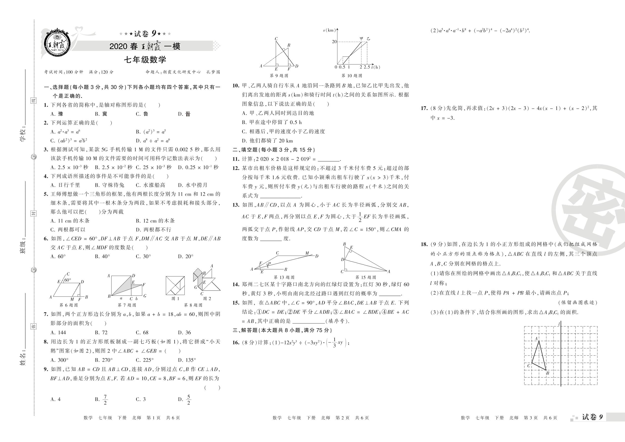 王朝霞期末模拟卷七年级下册数学(北师版)_R210805155743【9】