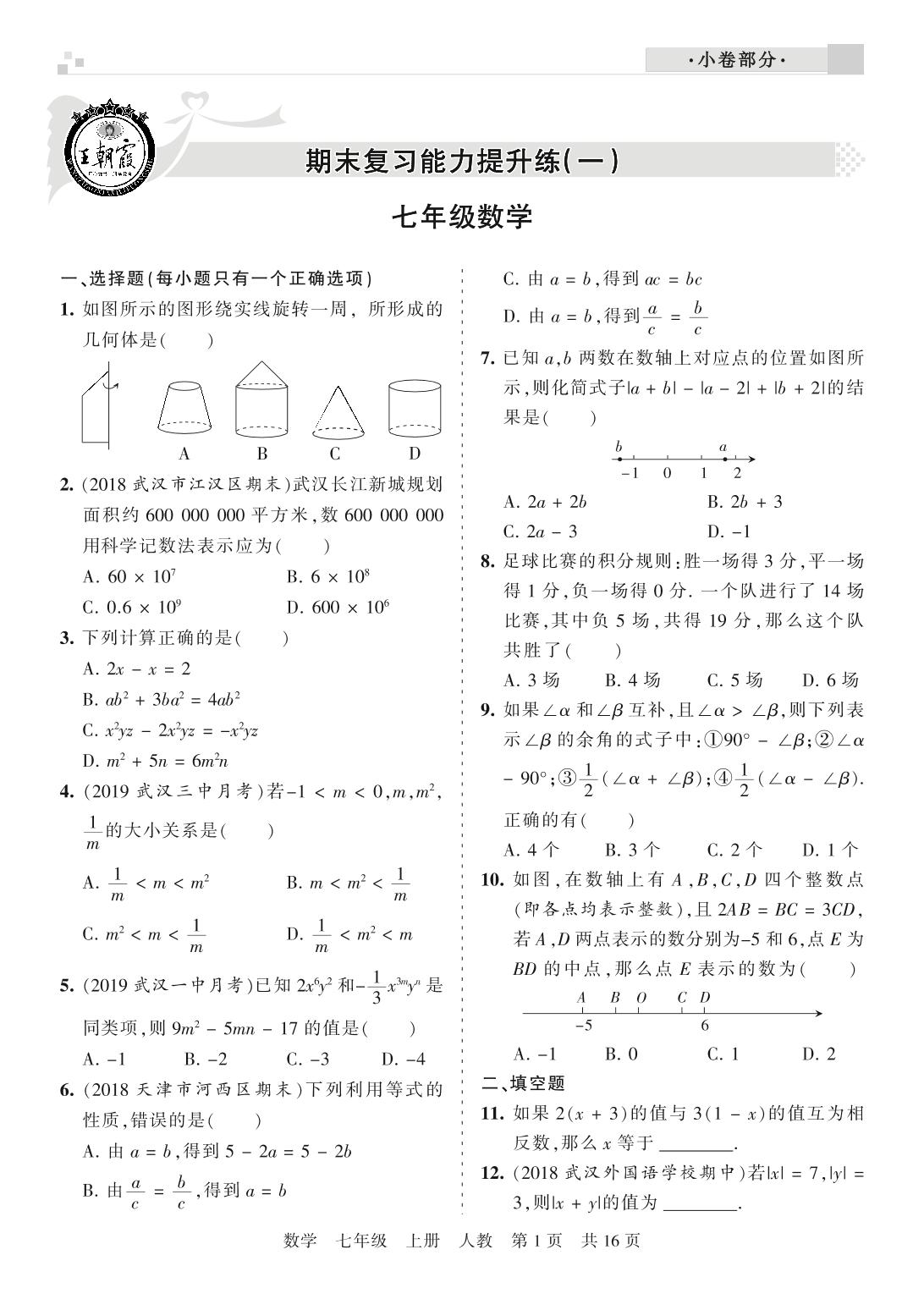 王朝霞期末小卷——期末复习能力提升练七年级上册数学(人教版)_R210805155813【0】