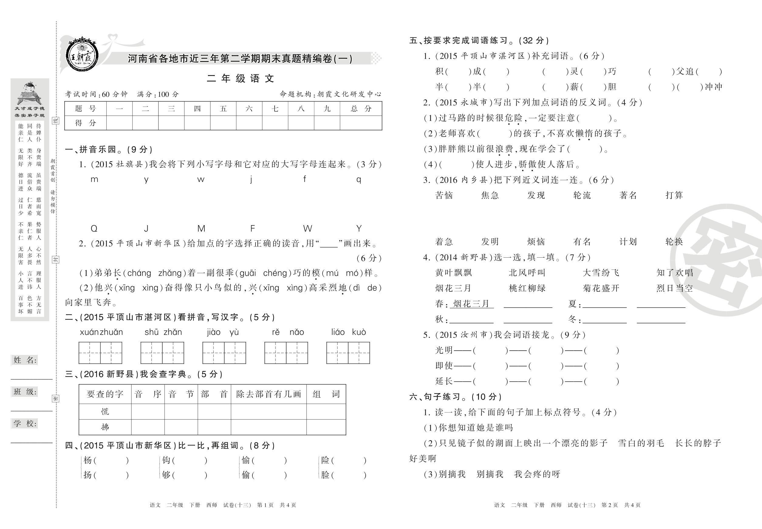 河南省近三年精编(一)二年级下册语文(西师版)【13】