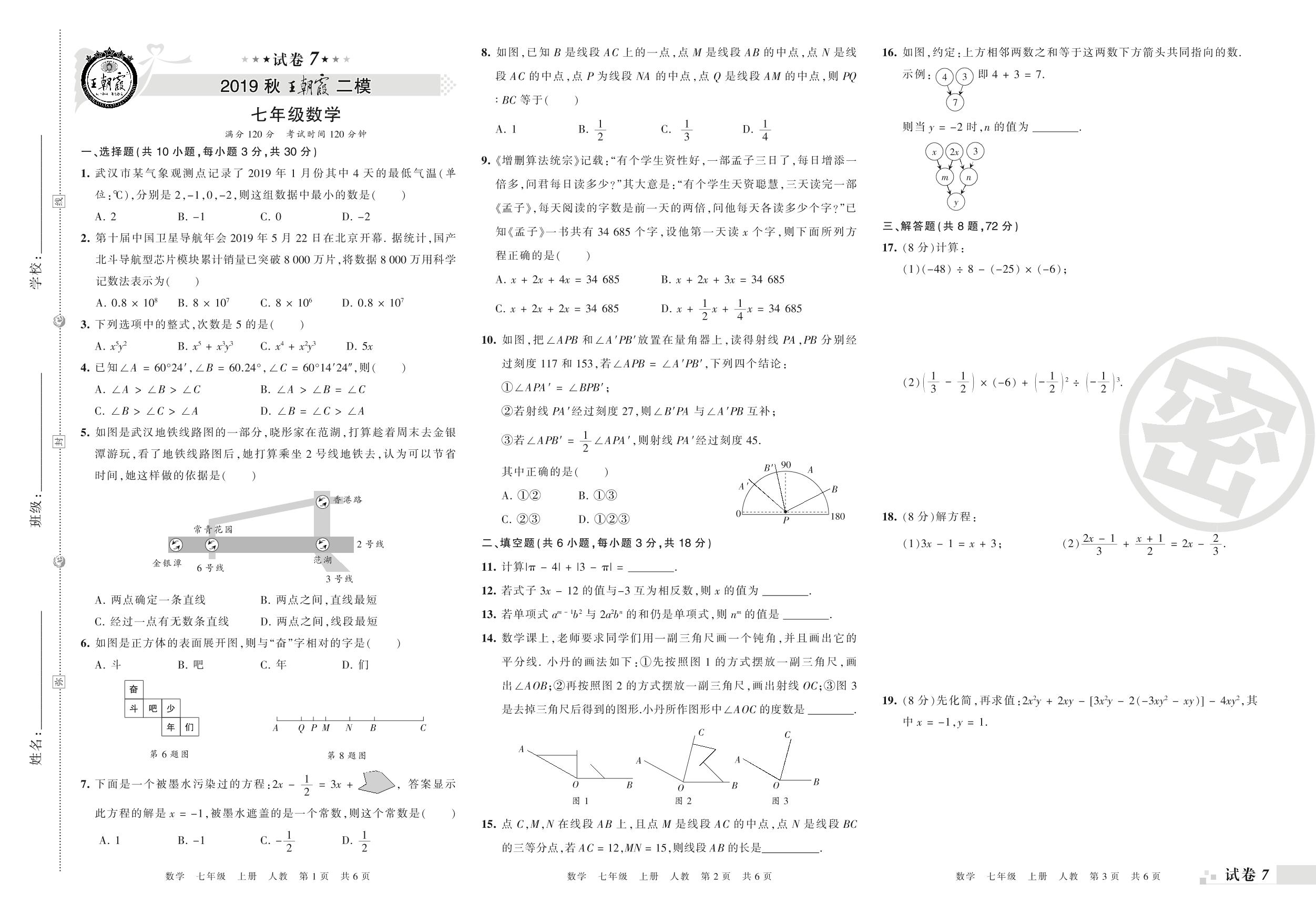 王朝霞期末模拟卷七年级上册数学(人教版)_R210805155933【7】