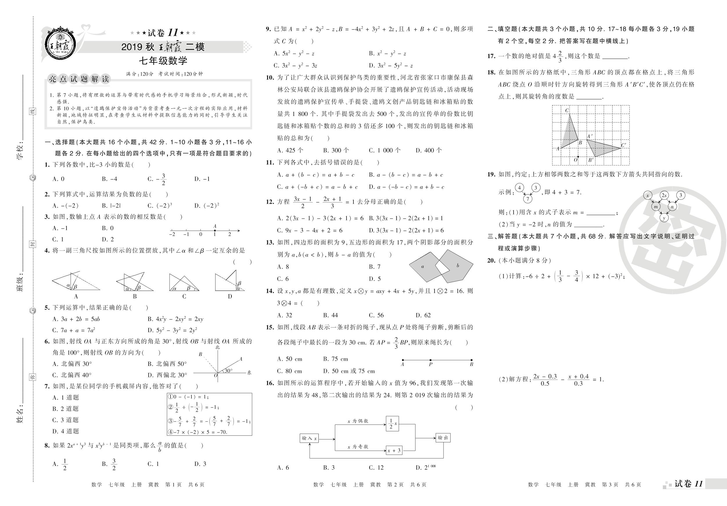 王朝霞期末模拟卷七年级上册数学(冀教版)_R210805155949【11】