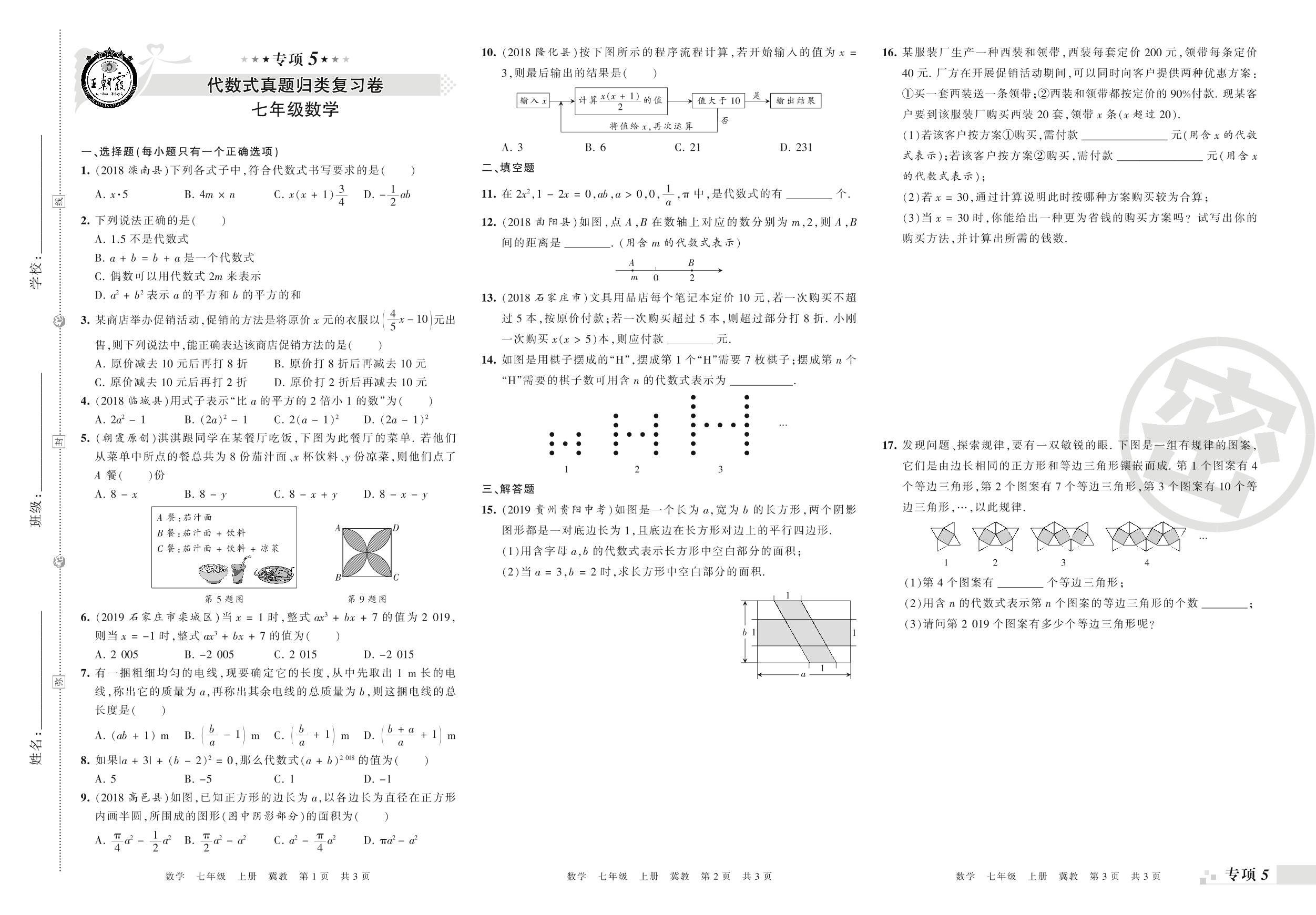 王朝霞期末专项卷——代数式、整式的加减真题归类复习七年级上册数学(冀教版)_R210805160002【0】