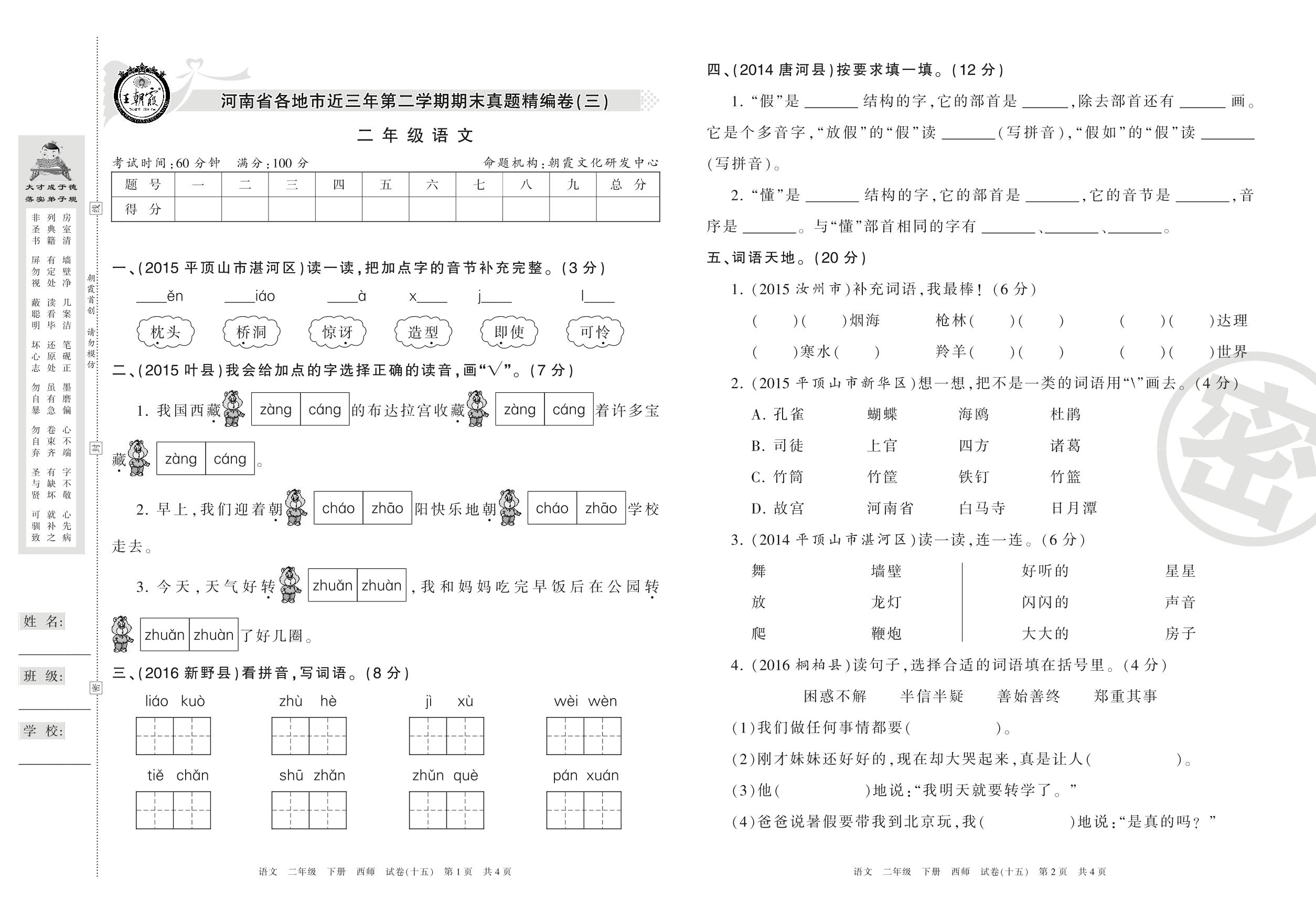 河南省近三年精编(三)二年级下册语文(西师版)【15】