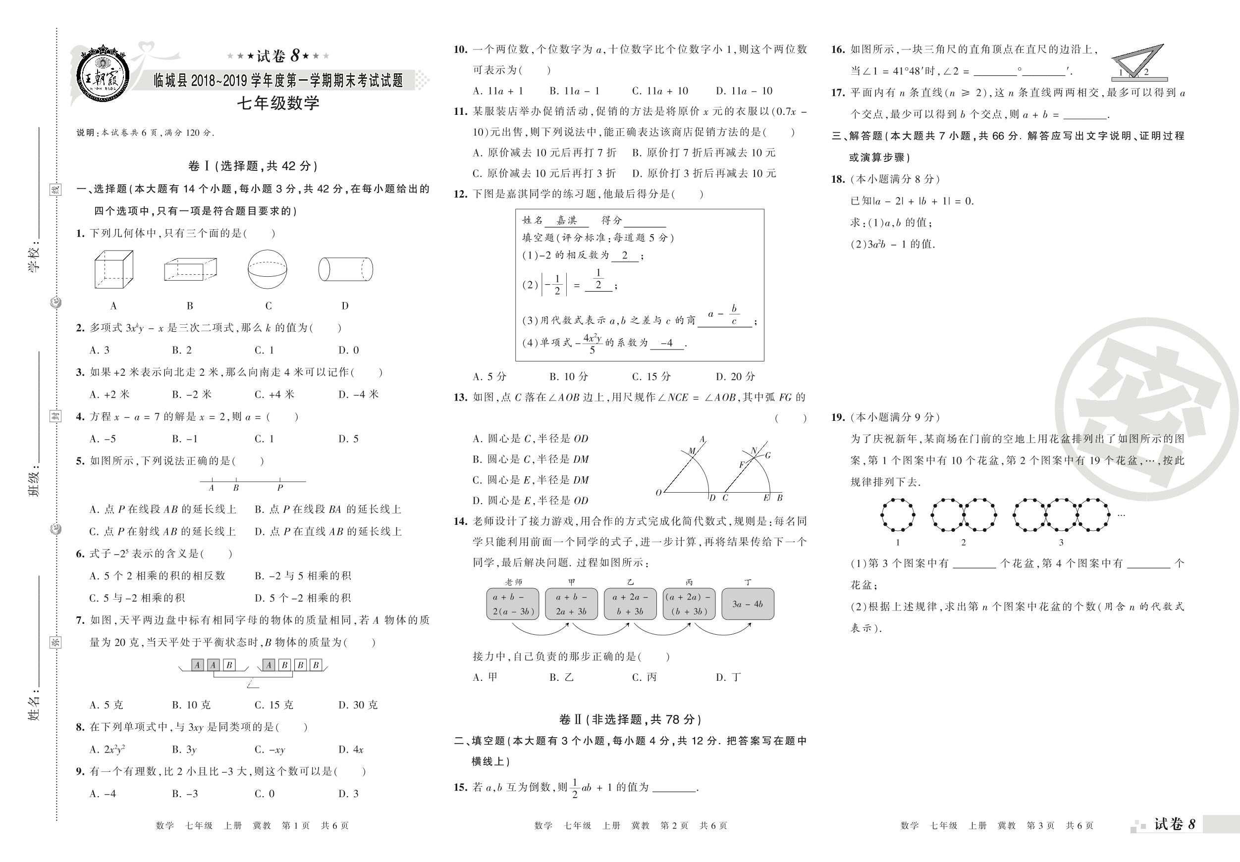 2018-2019学年第一学期邢台市临城县七年级数学试卷(冀教版)【8】