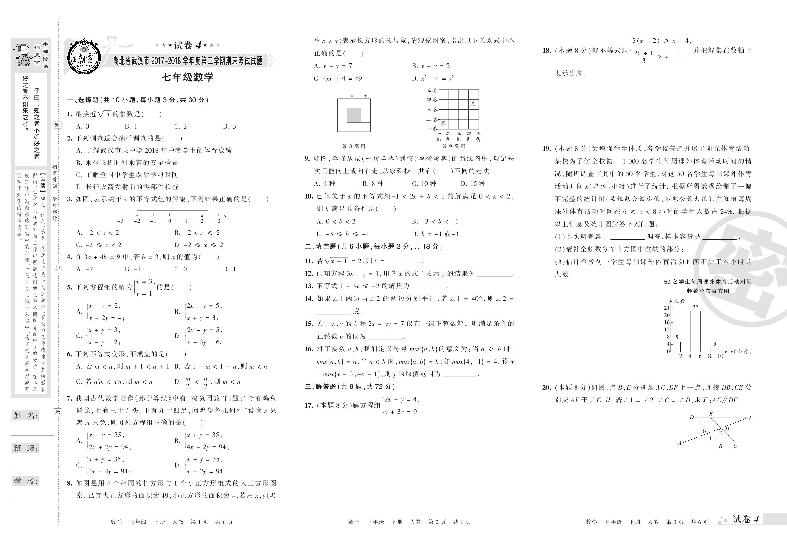 2017-2018学年第二学期湖北省武汉市七年级数学试卷(人教版)【4】