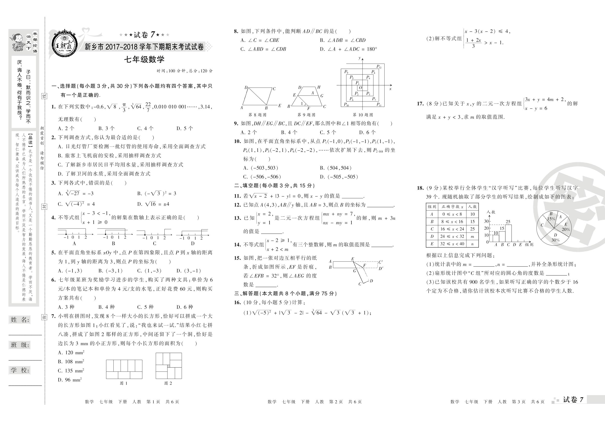 2017-2018学年第二学期新乡市七年级数学试卷(人教版)【7】
