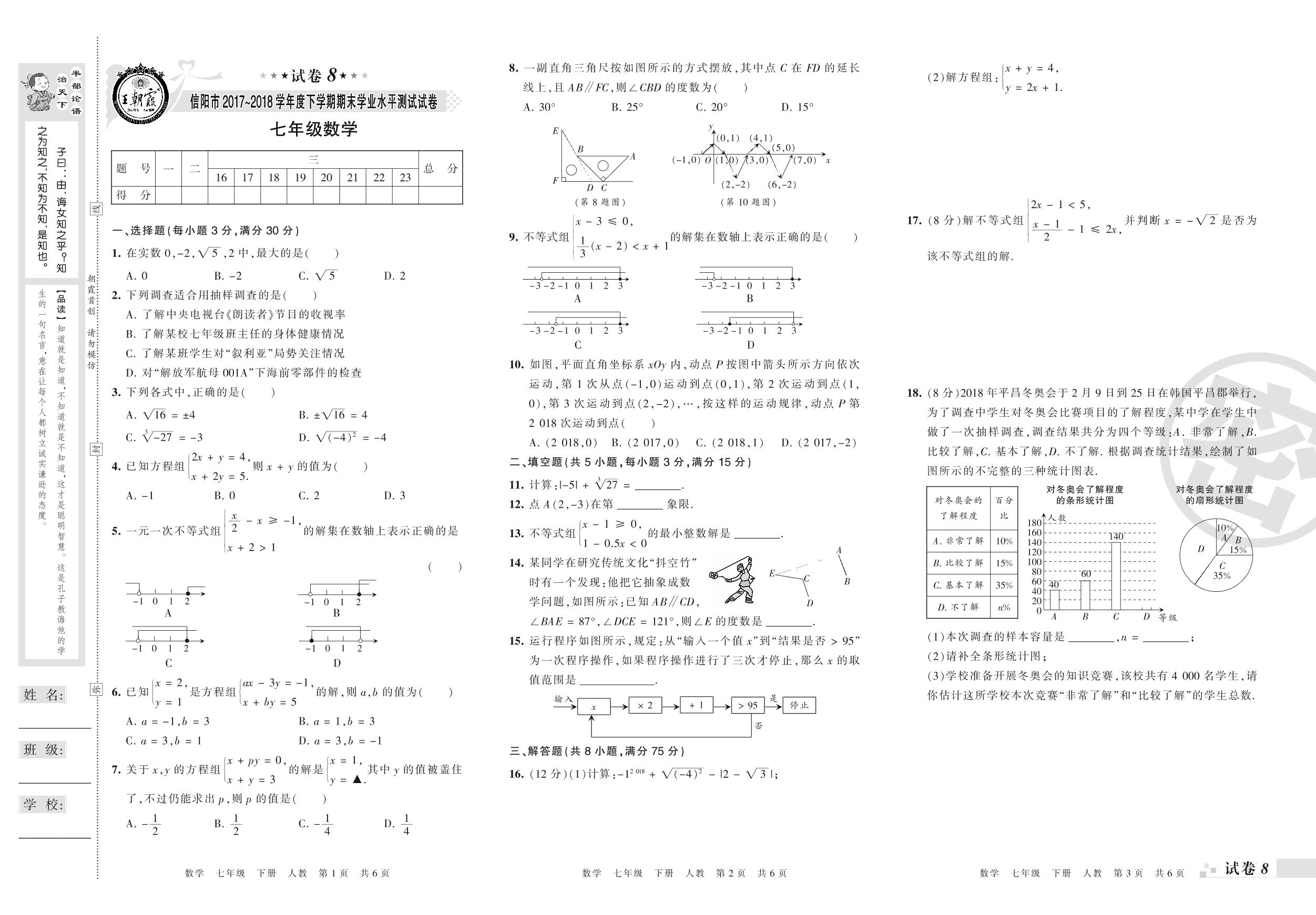 2017-2018学年第二学期信阳市七年级数学试卷(人教版)【8】