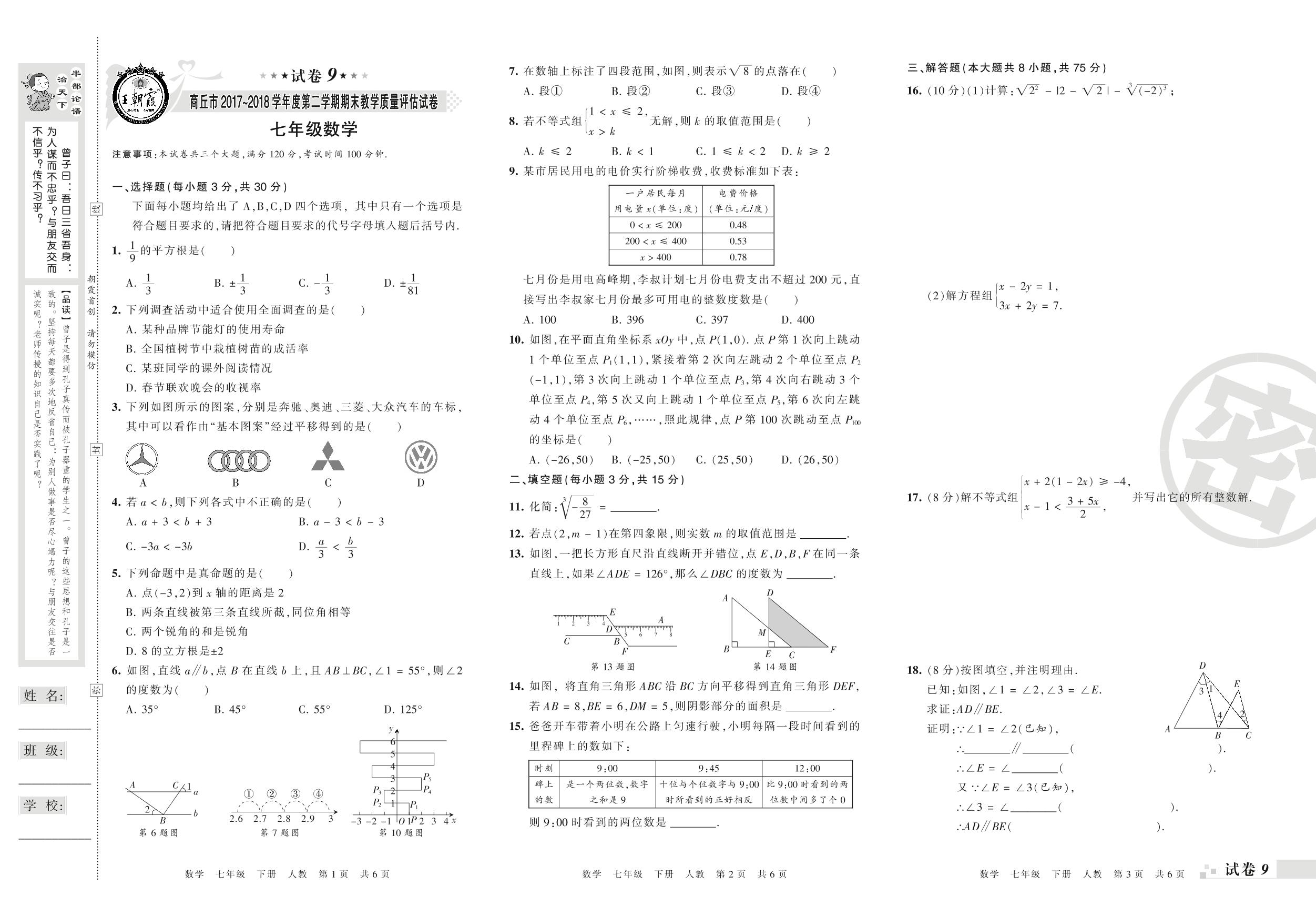 2017-2018学年第二学期商丘市七年级数学试卷(人教版)【9】