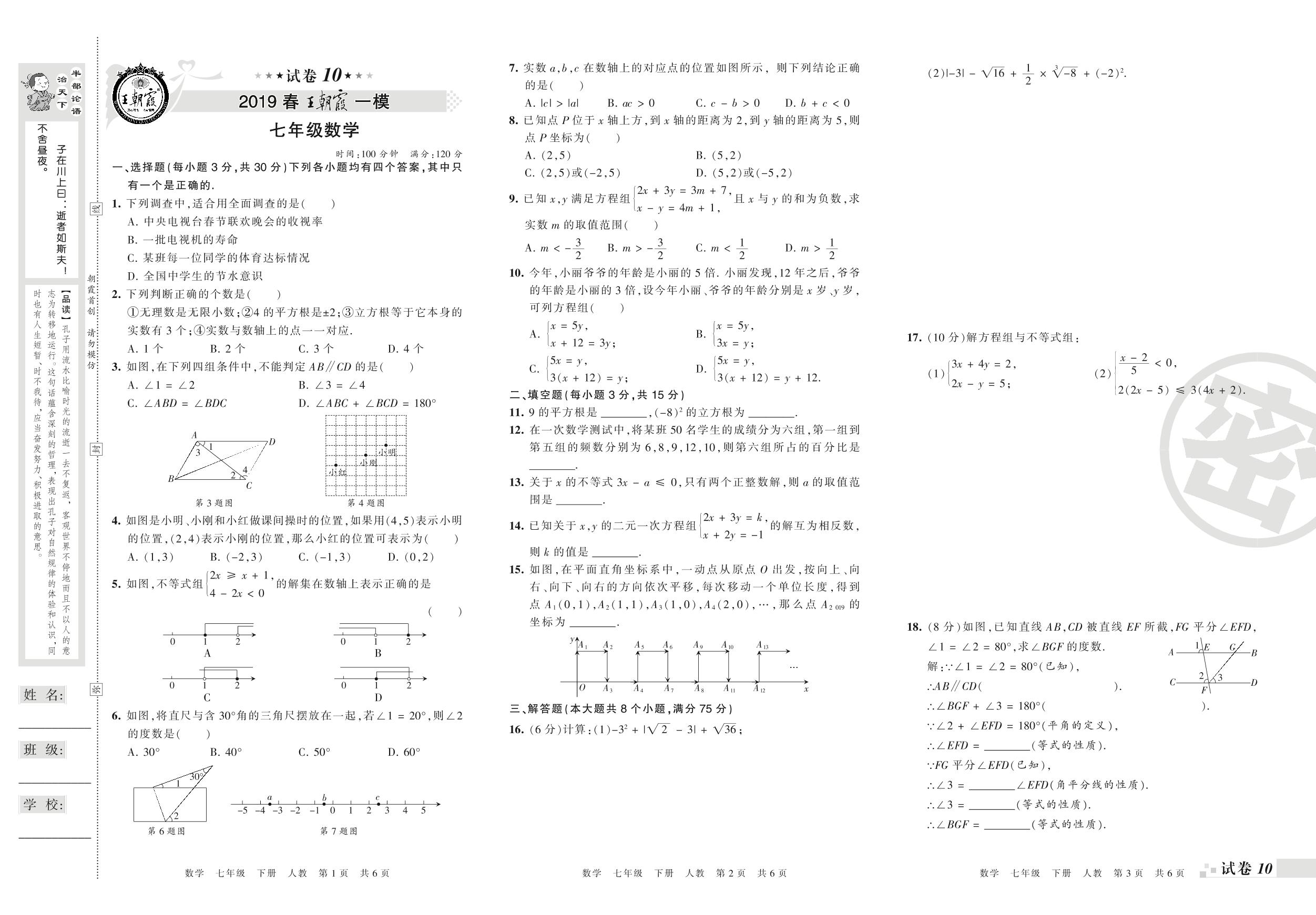 王朝霞期末模拟卷七年级下册数学(人教版)_R210805160219【10】