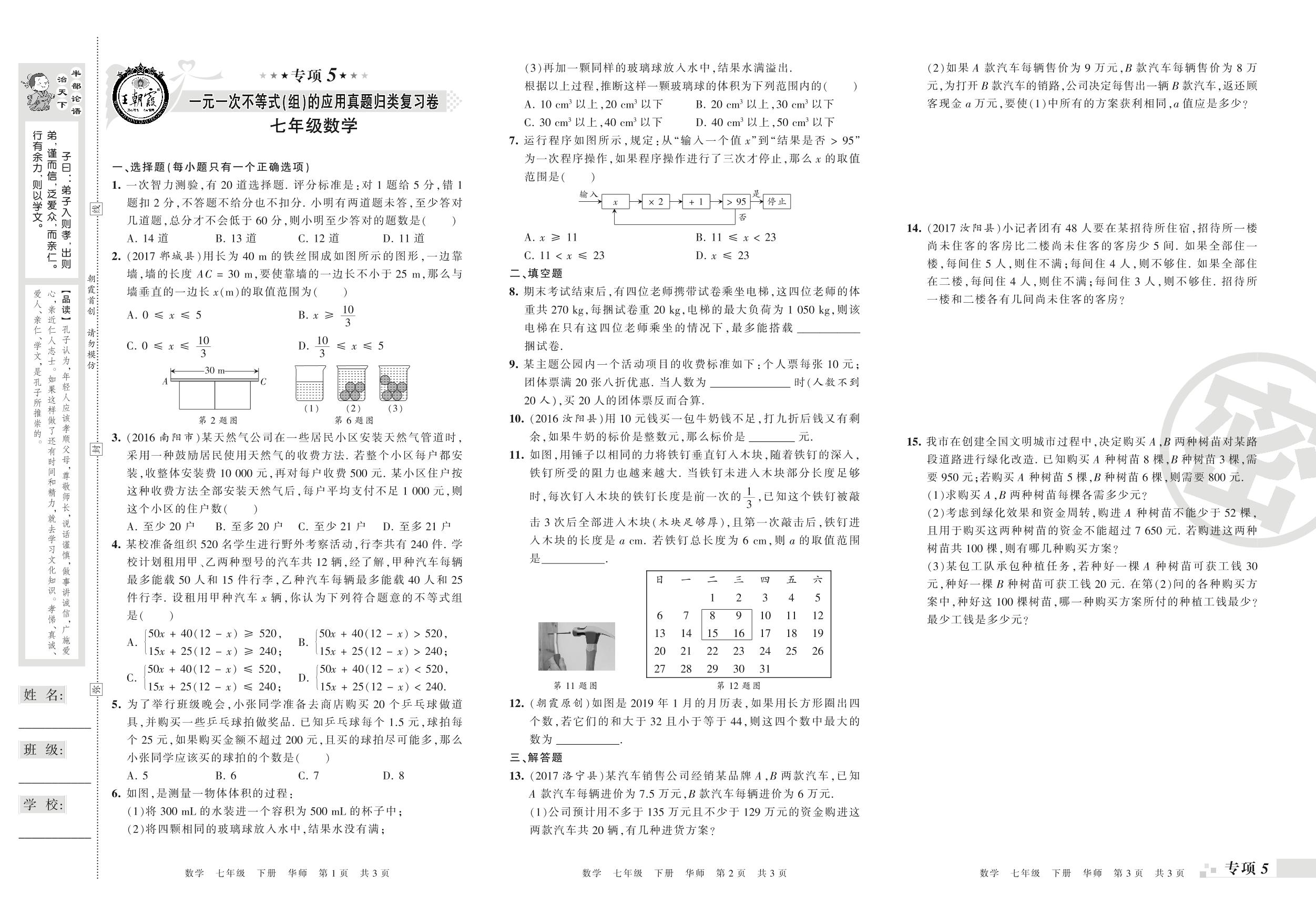 王朝霞期末专项卷——一元一次不等式(组)的应用、多边形(一)真题归类复习卷七年级下册数学(华师版)_R210805160246【0】
