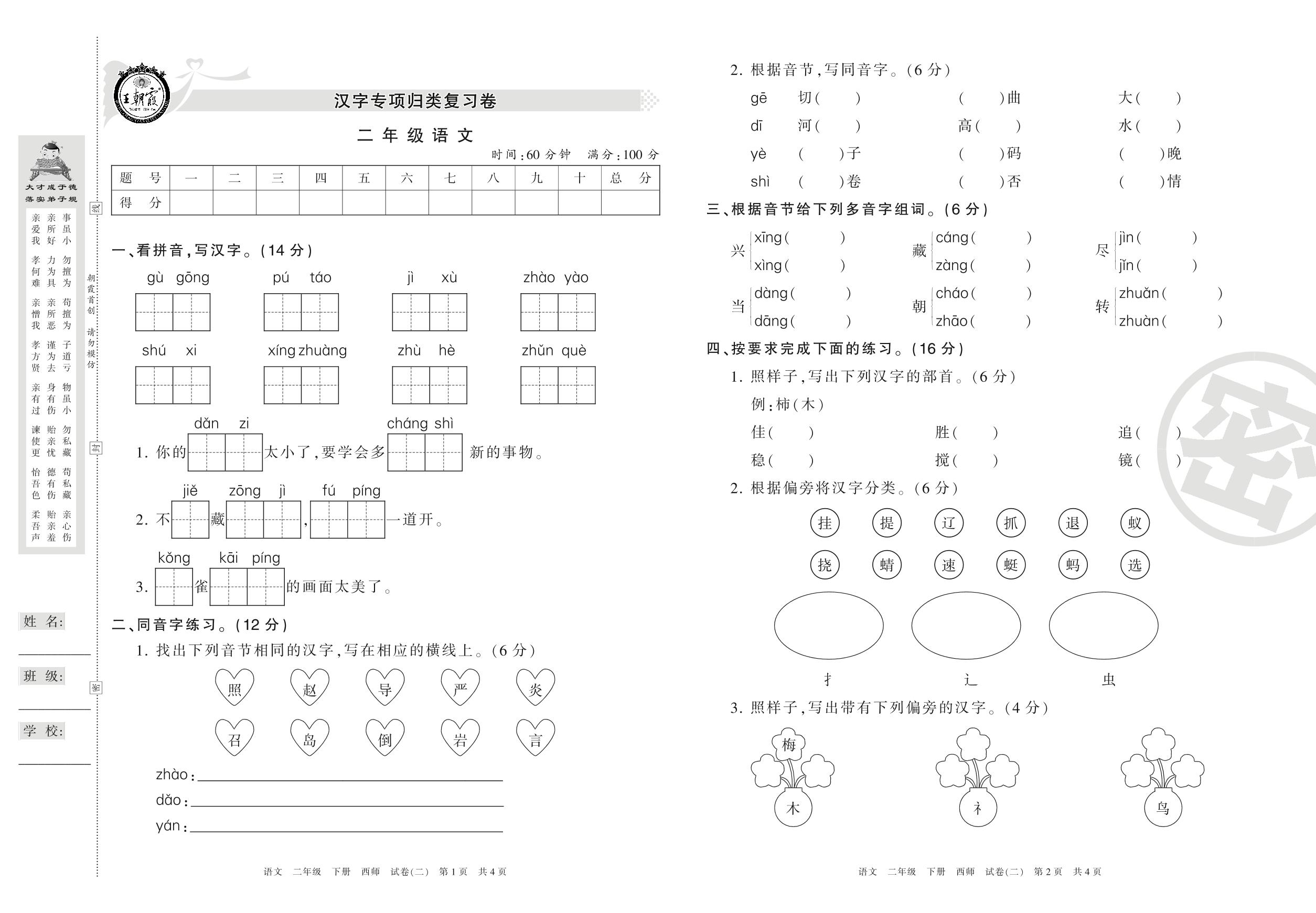 王朝霞期末专项卷二年级下册语文(西师版)_R21080173715【2】