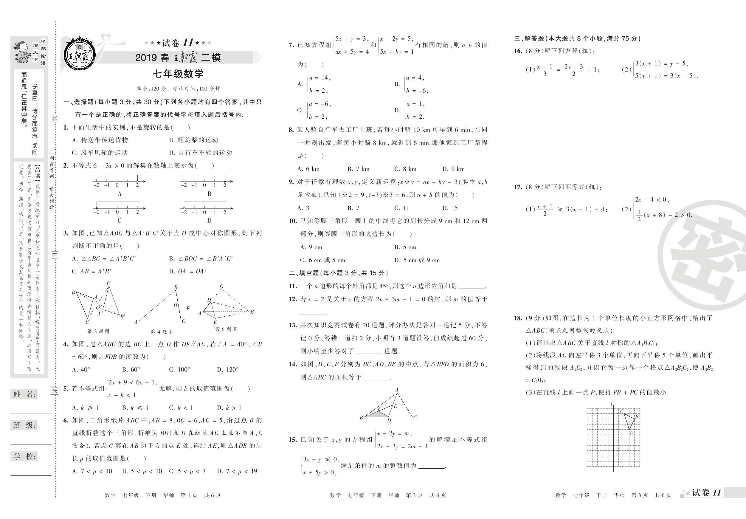 王朝霞期末模拟卷七年级下册数学(华师版)_R210805160401【11】