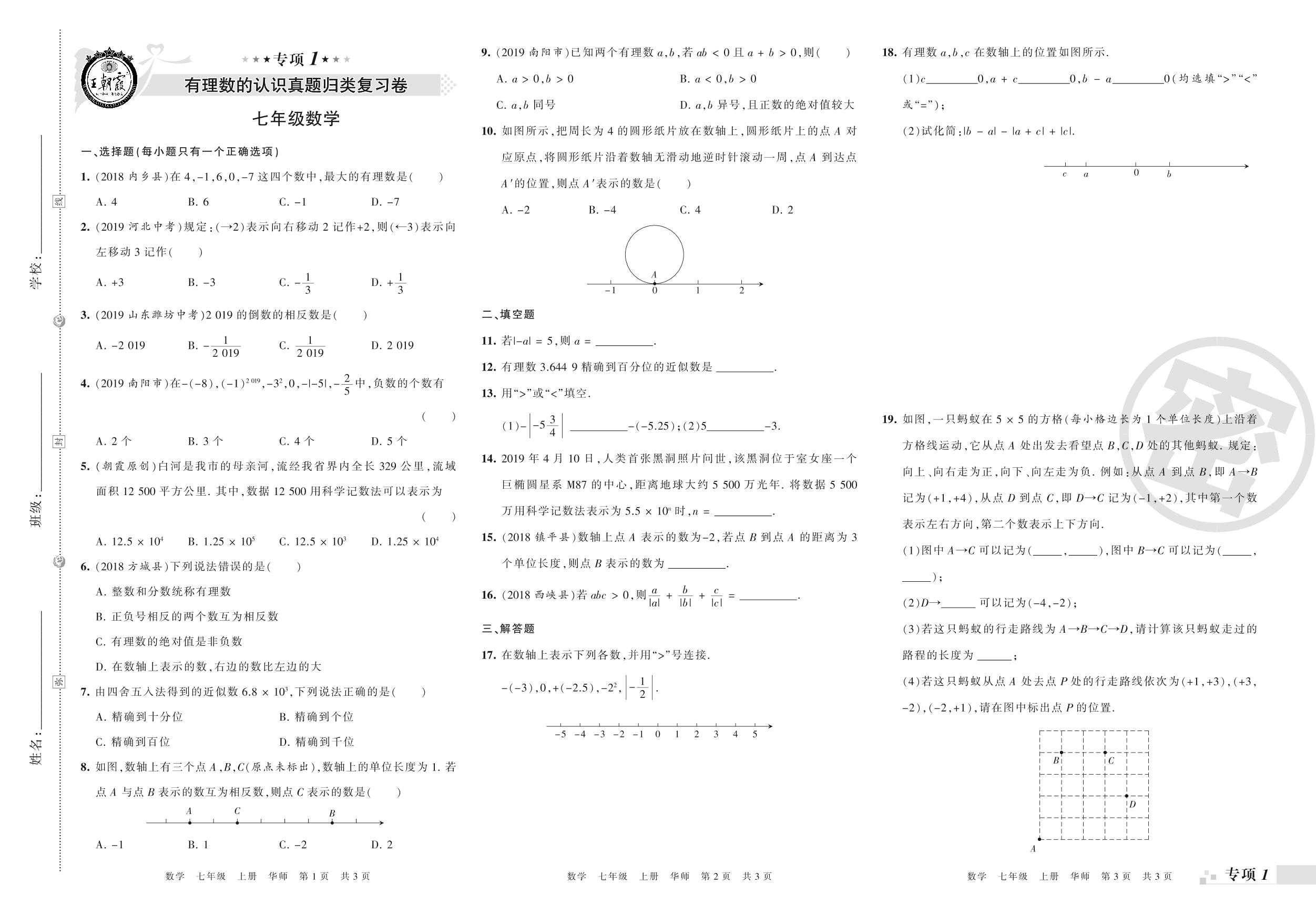 王朝霞期末专项卷——有理数的认识、有理数的运算真题归类复习七年级上册数学(华师版)_R210805160517【0】
