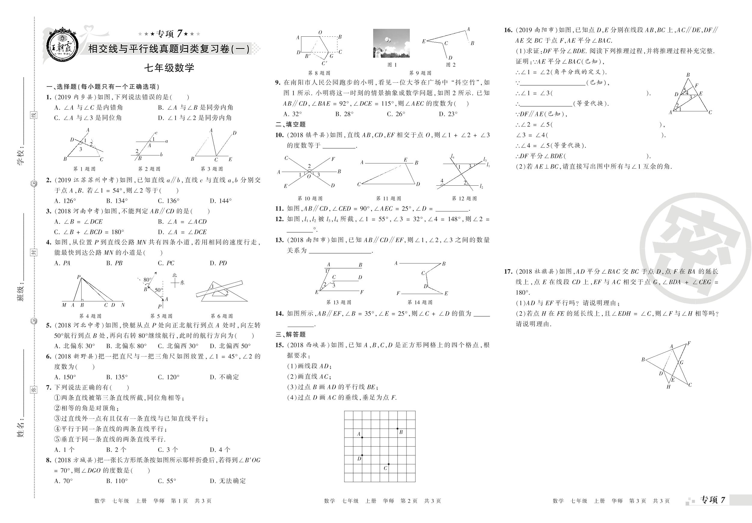 王朝霞期末专项卷——相交线与平行线真题归类复习七年级上册数学(华师版)_R210805160531【0】