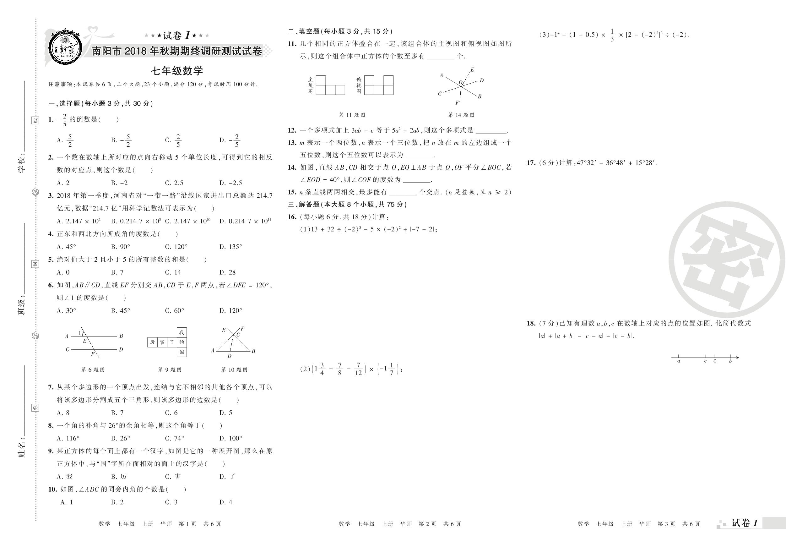 2018-2019学年第一学期南阳市七年级数学试卷(华师版)【1】