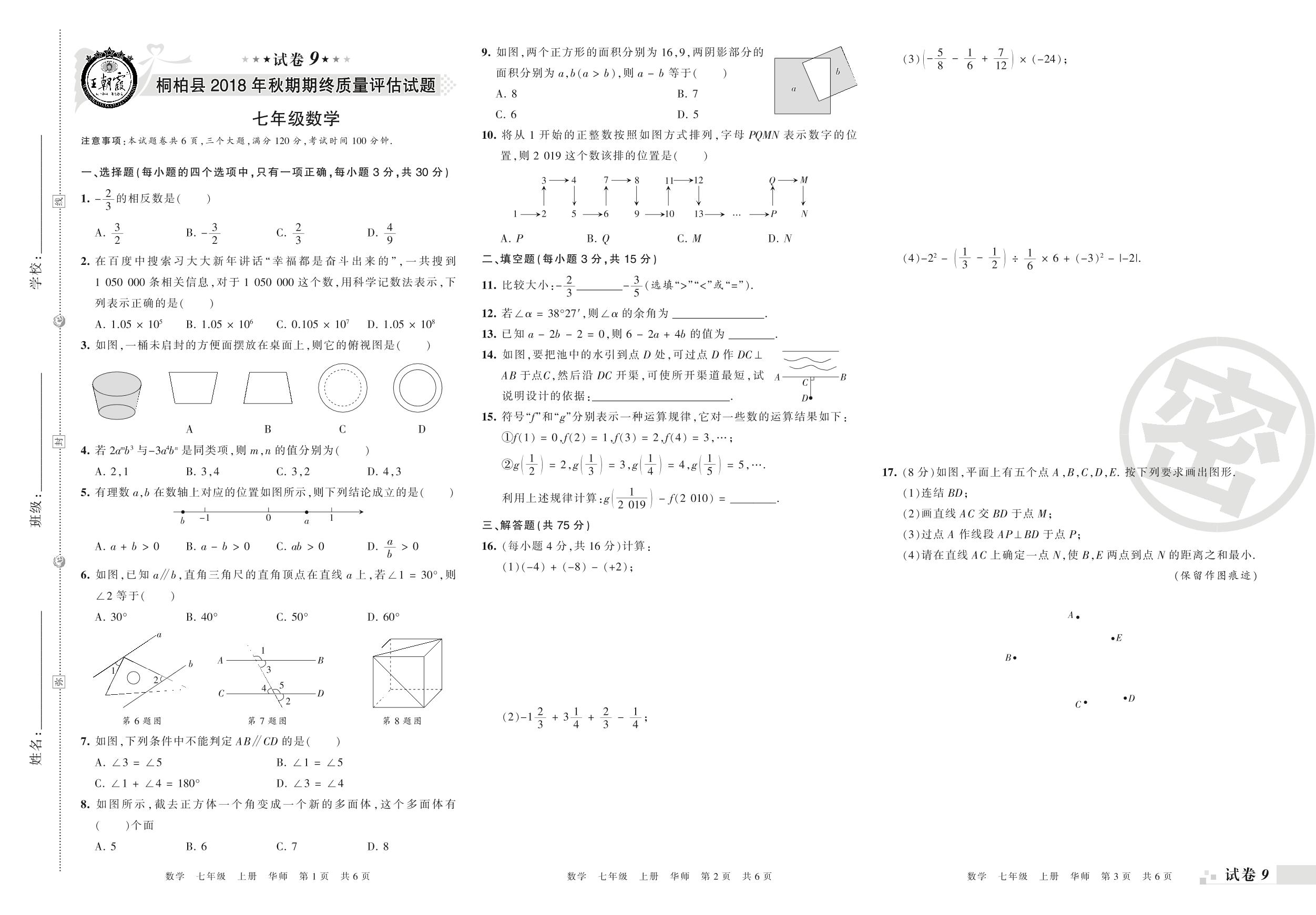 2018-2019学年第一学期南阳市桐柏县七年级数学试卷(华师版)【9】