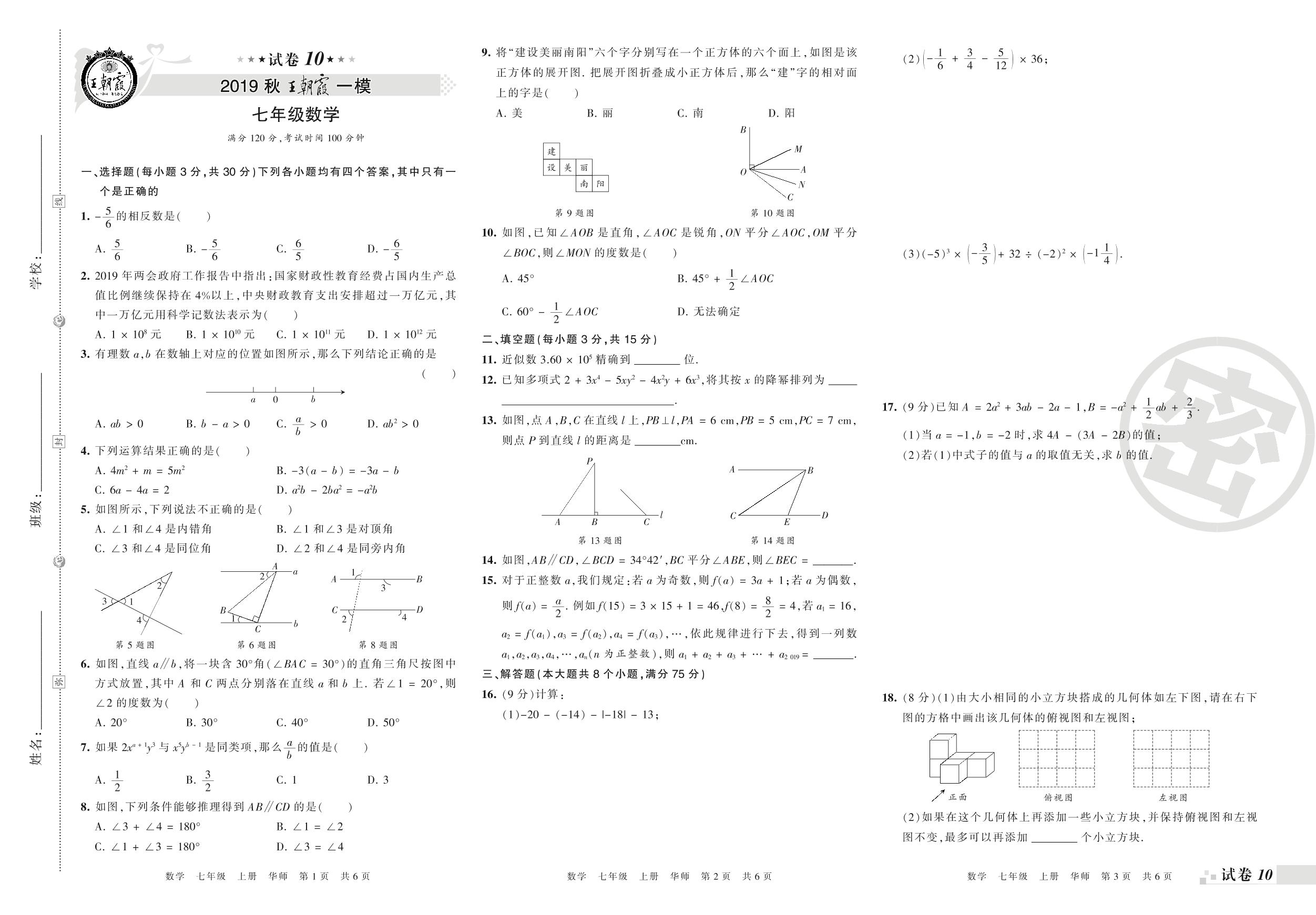 王朝霞期末模拟卷七年级上册数学(华师版)_R210805160611【10】