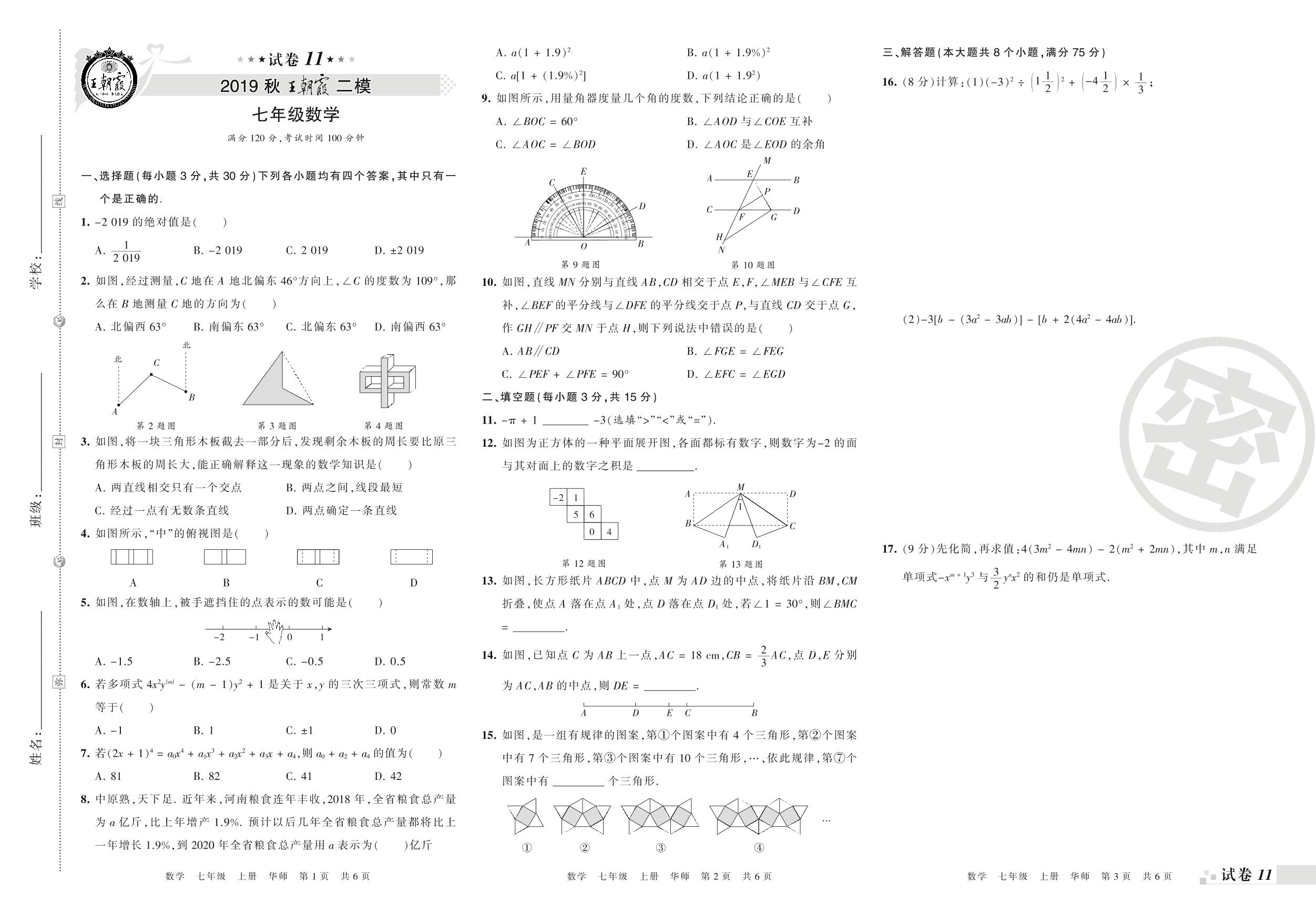 王朝霞期末模拟卷七年级上册数学(华师版)_R210805160616【11】