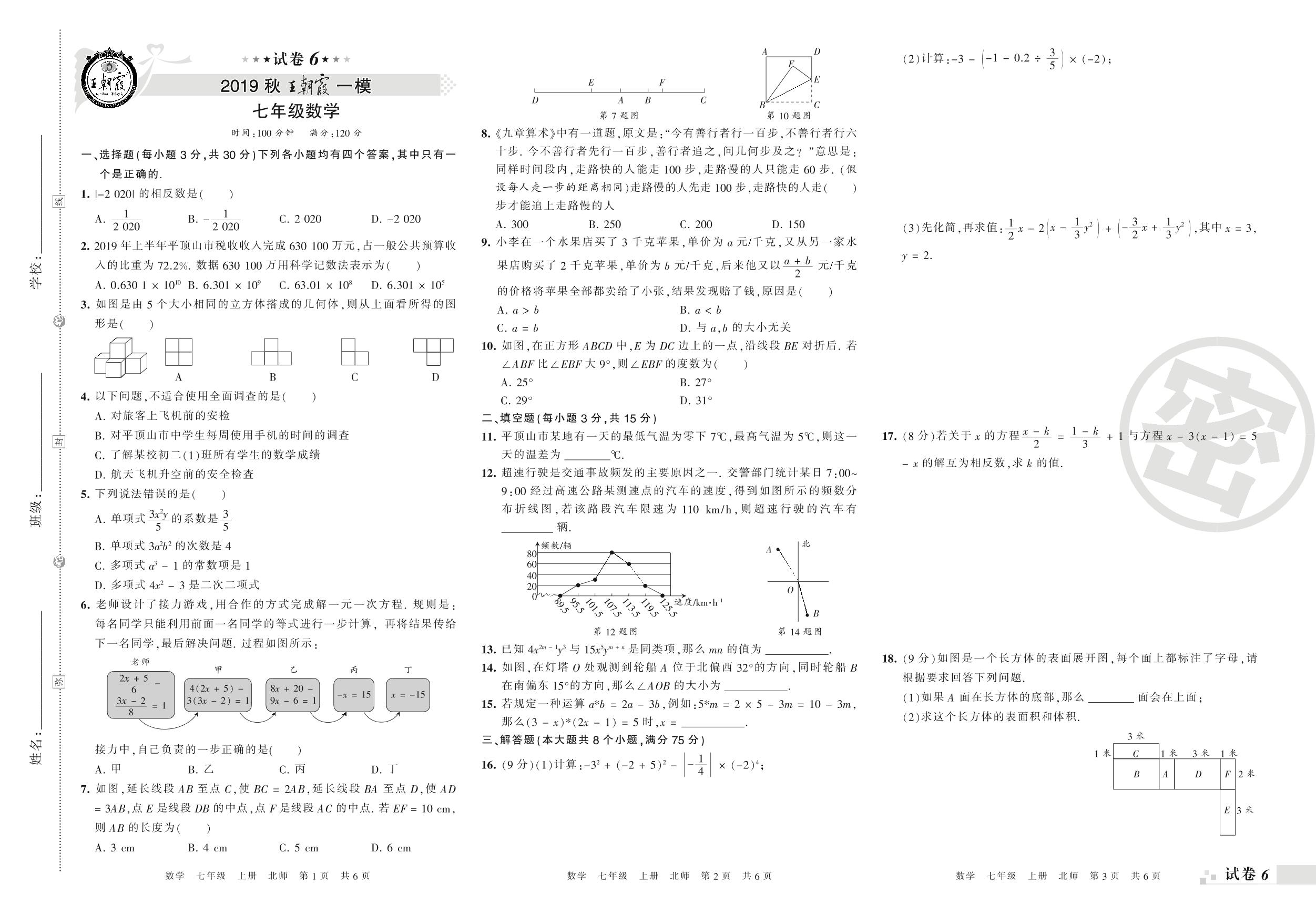 王朝霞期末模拟卷七年级上册数学(北师版)_R210805160719【6】