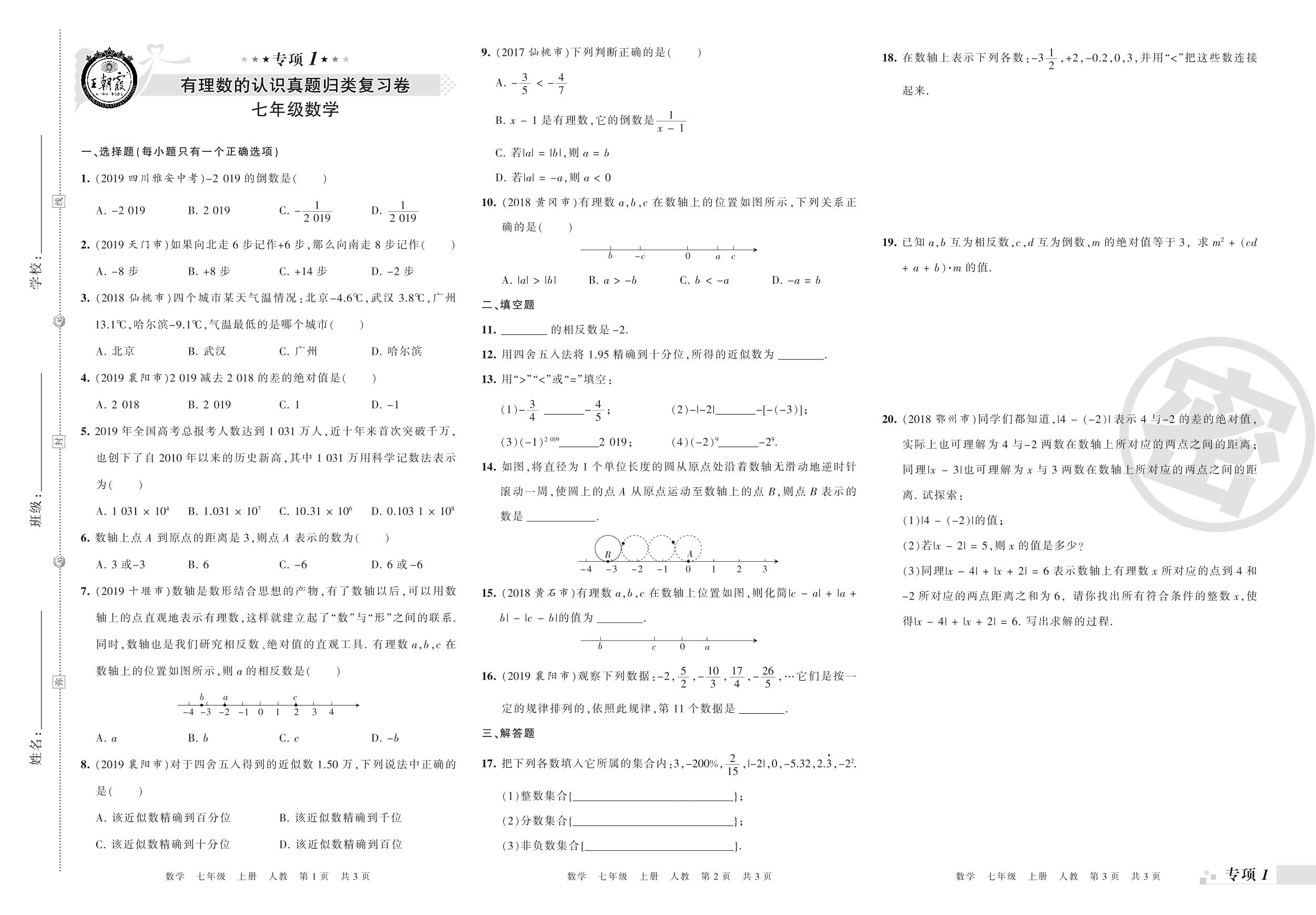 王朝霞期末专项卷——有理数的认识、有理数的运算真题归类复习七年级上册数学(人教版)_R210805160736【0】