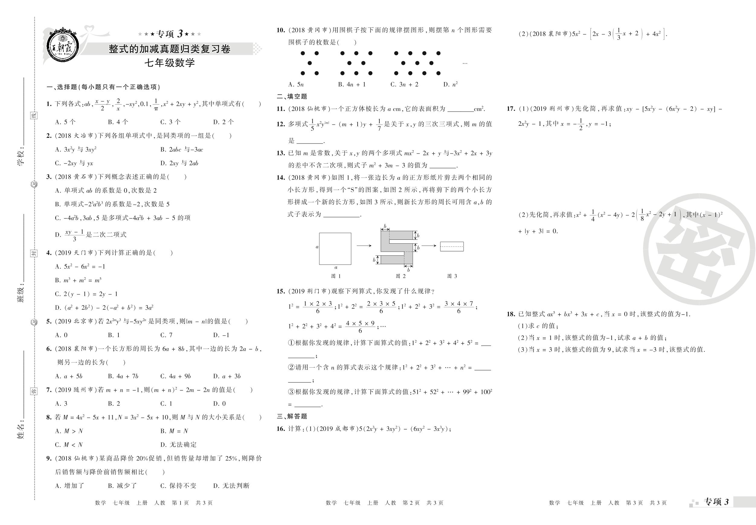王朝霞期末专项卷——整式的加减、一元一次方程的认识与解法真题归类复习七年级上册数学(人教版)_R210805160740【0】