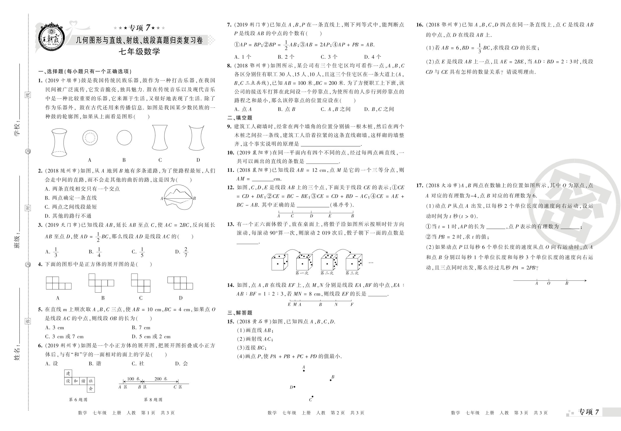 王朝霞期末专项卷——几何图形与直线、射线、线段、角真题归类复习七年级上册数学(人教版)_R210805160748【0】
