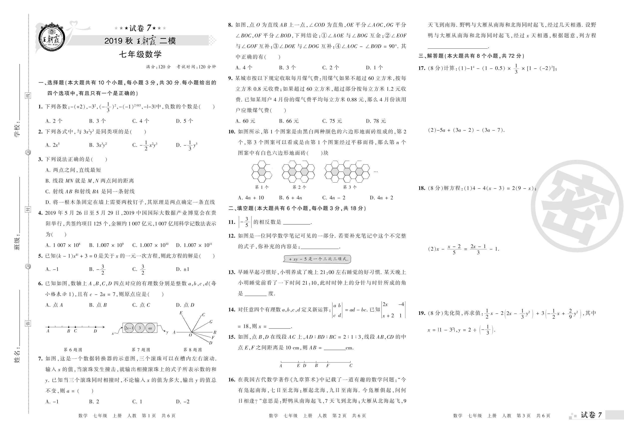 王朝霞期末模拟卷七年级上册数学(人教版)_R210805160816【7】